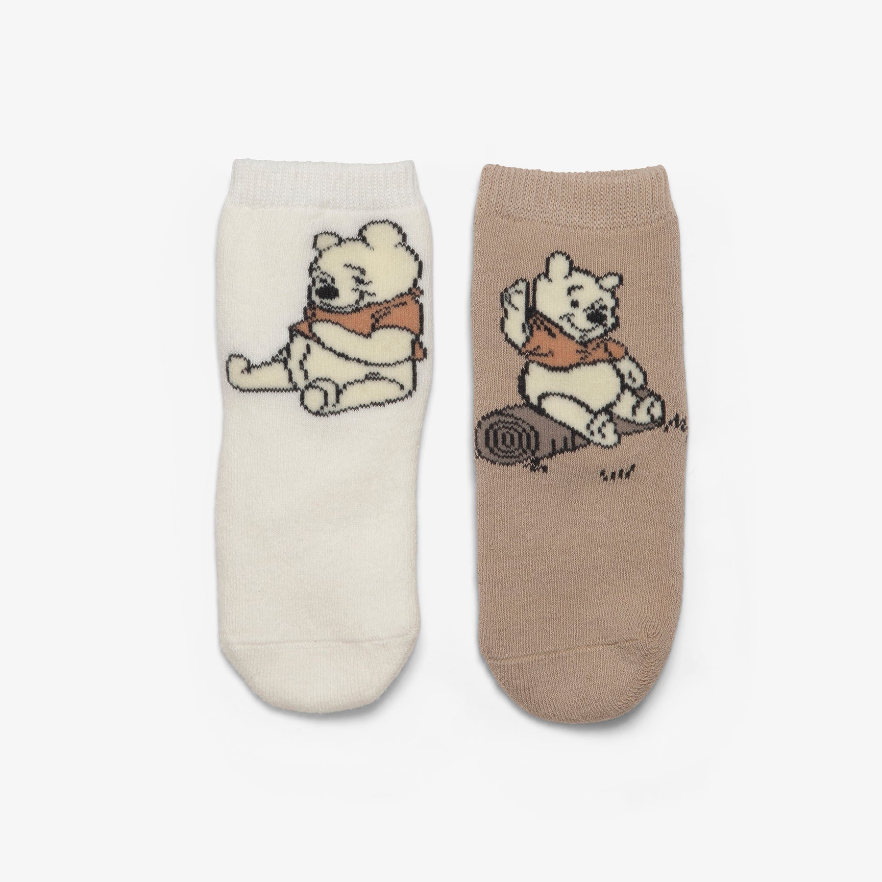 שני זוגות גרביים מעוצבות בהדפסים של פו הדב.