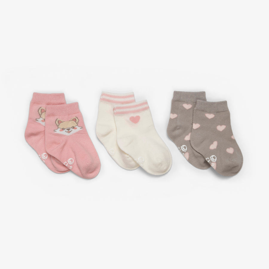 שלישיית זוגות גרביים הדפס לבבות