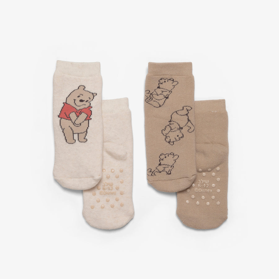 מארז 2 זוגות גרביים פו הדב צבע אבן