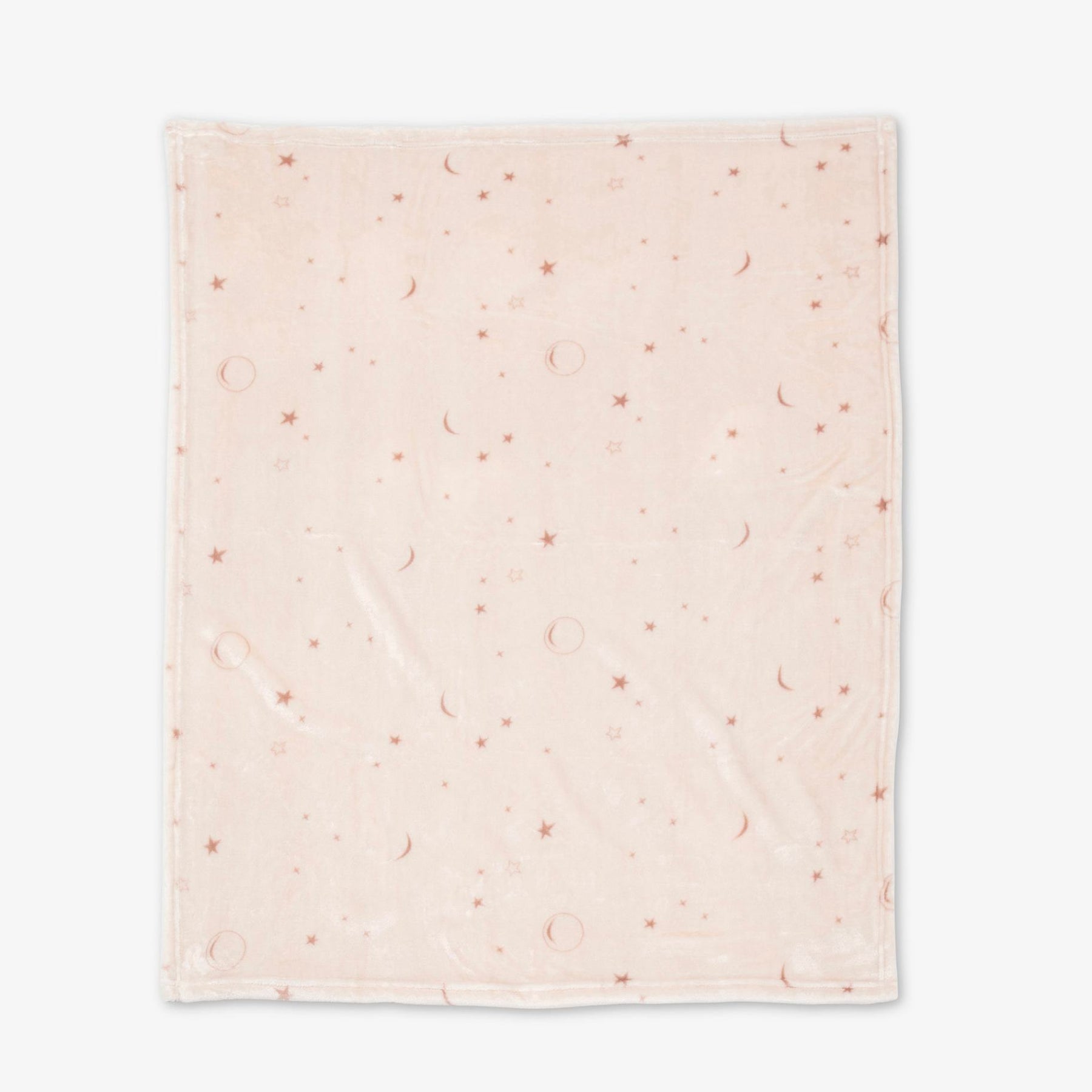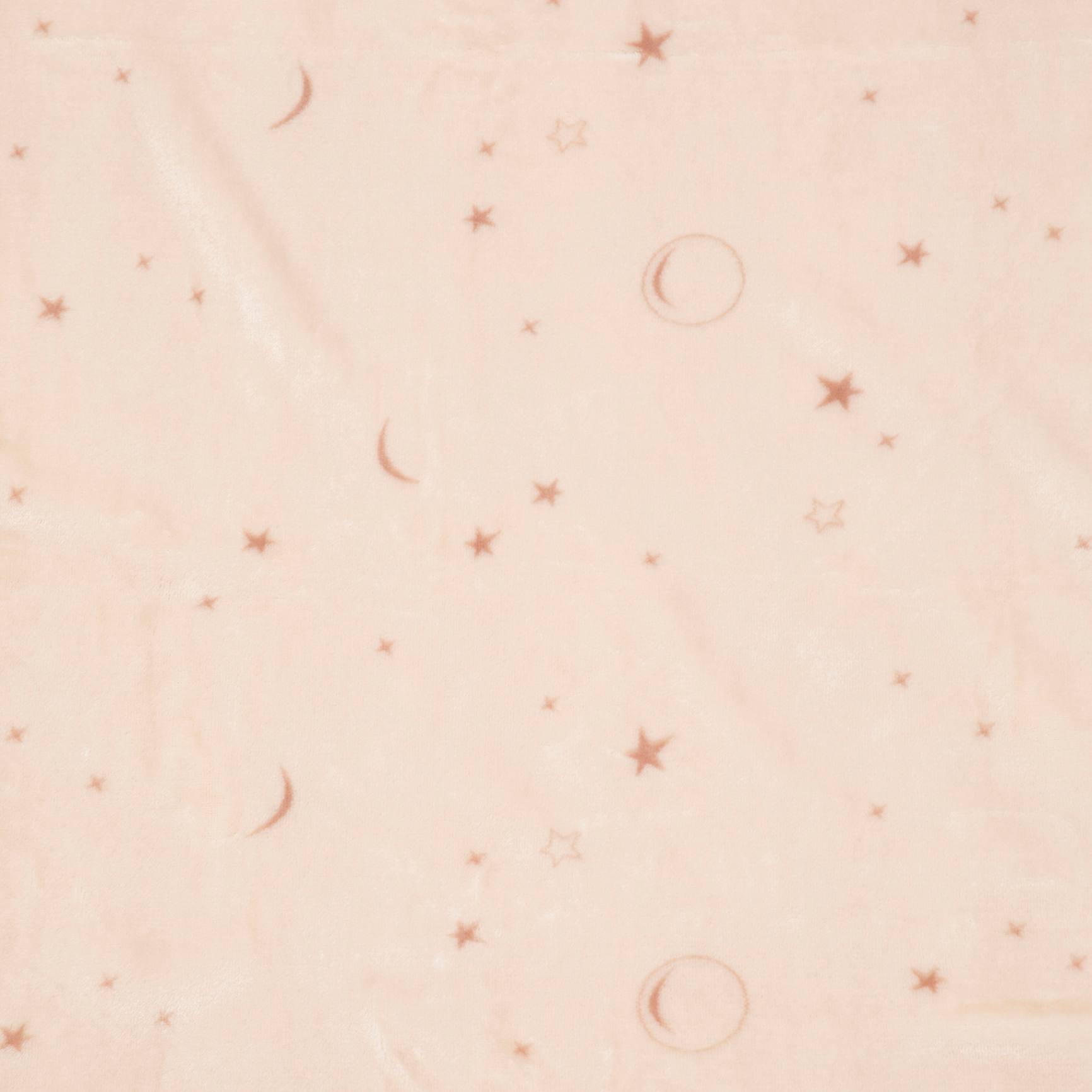 שמיכת קורל פליז לעגלת תינוק. השמיכה בצבע ורוד ובהדפס ירח וכוכבים. מידה: 76X100 סמ. 100% פוליאסטר.