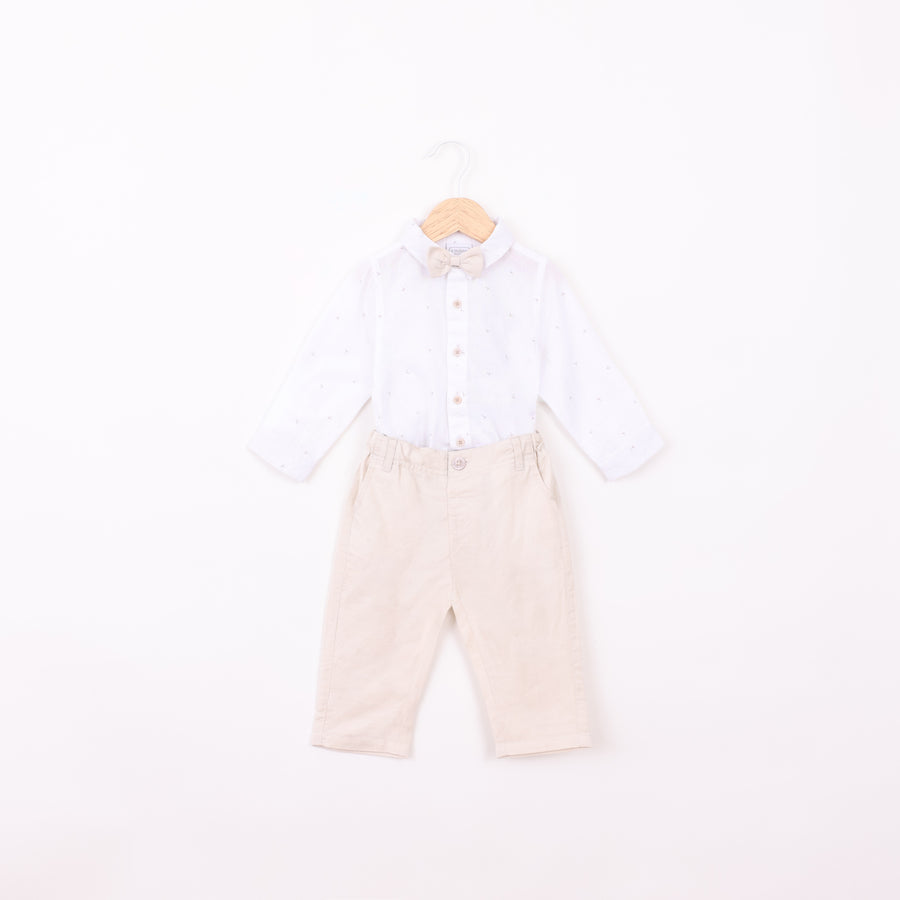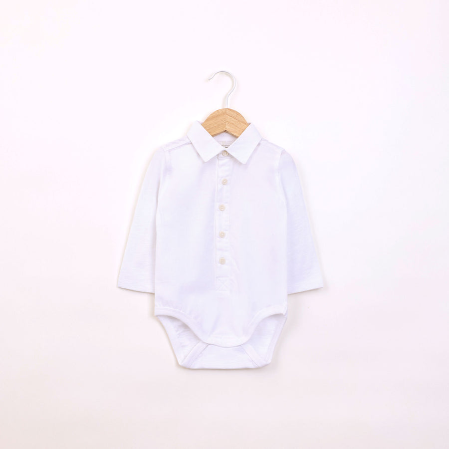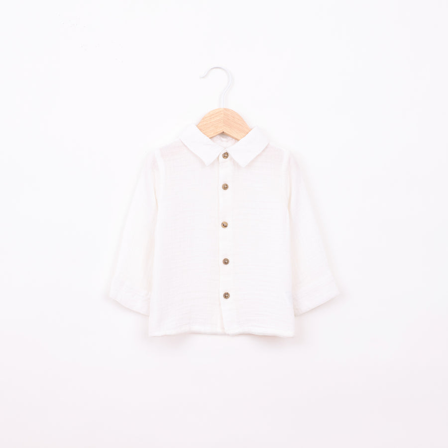 חולצה לבנה מכופתרת עם שרוול ארוך
