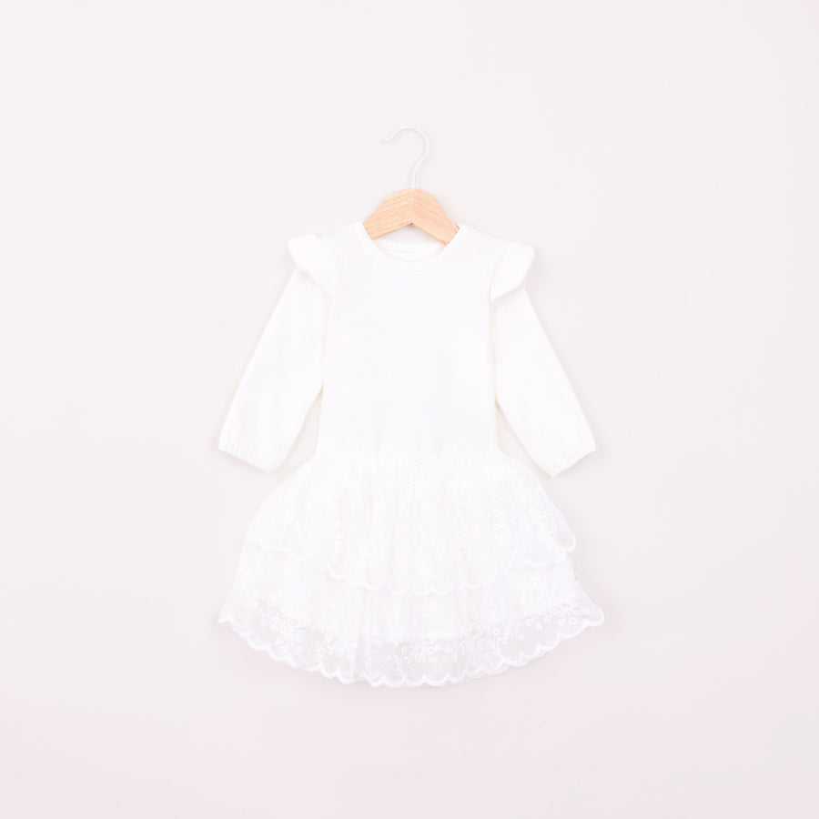 שמלה חגיגית עם שכבת טול ורקמת פרחים בגוון שמנת