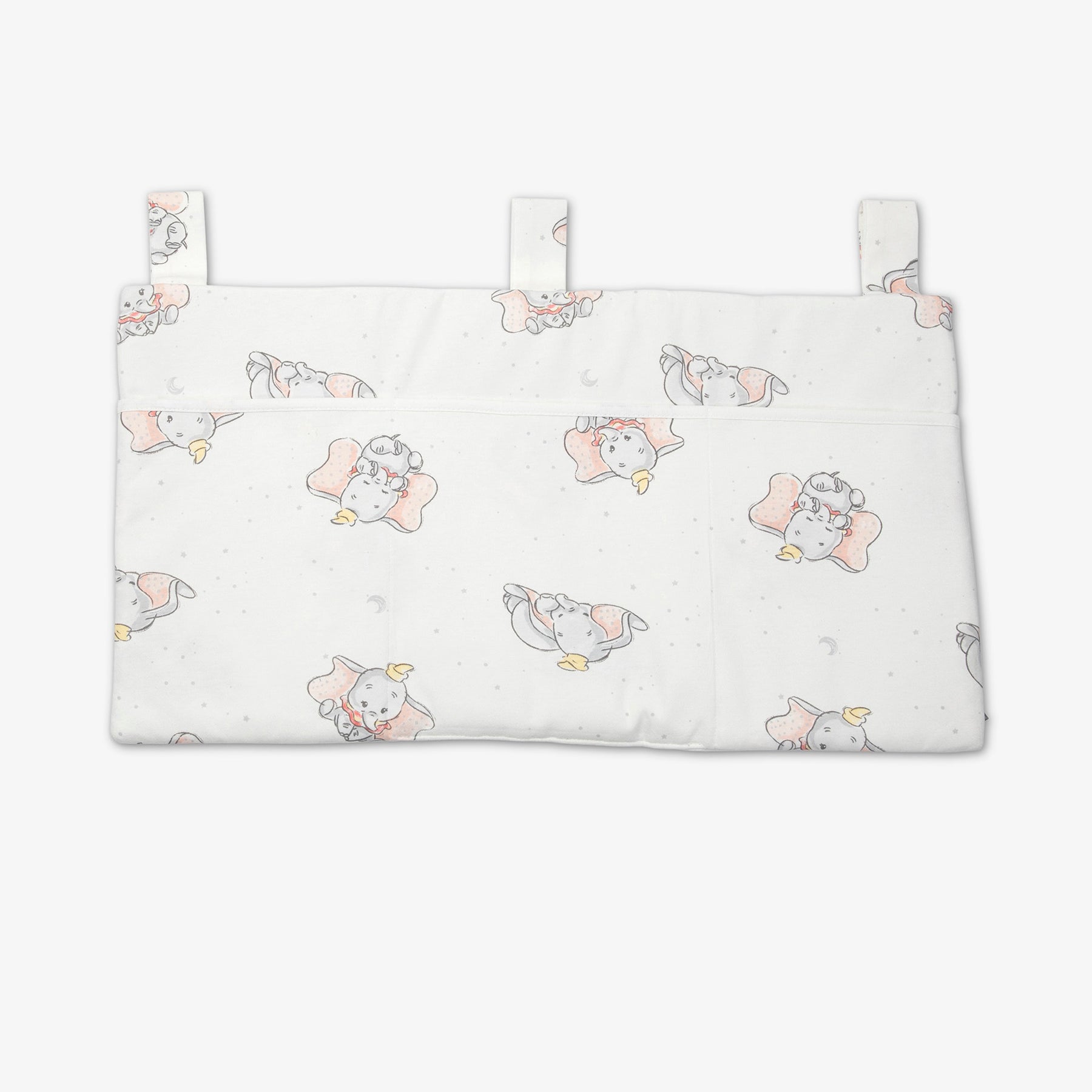 ארגונית מעוצבת בהדפס דמבו הפיל המעופף מתוך קולקציית דיסני. הארגונית בעלת כיסים לאחסון ולארגון של מוצרים כגון חיתולים מוצצים מגבונים. הארגונית נתלית בקלות על המיטה באמצעות רצועות סקוץ'. הרכב הבד: 100% כותנה מילוי 100% פוליאסטר.