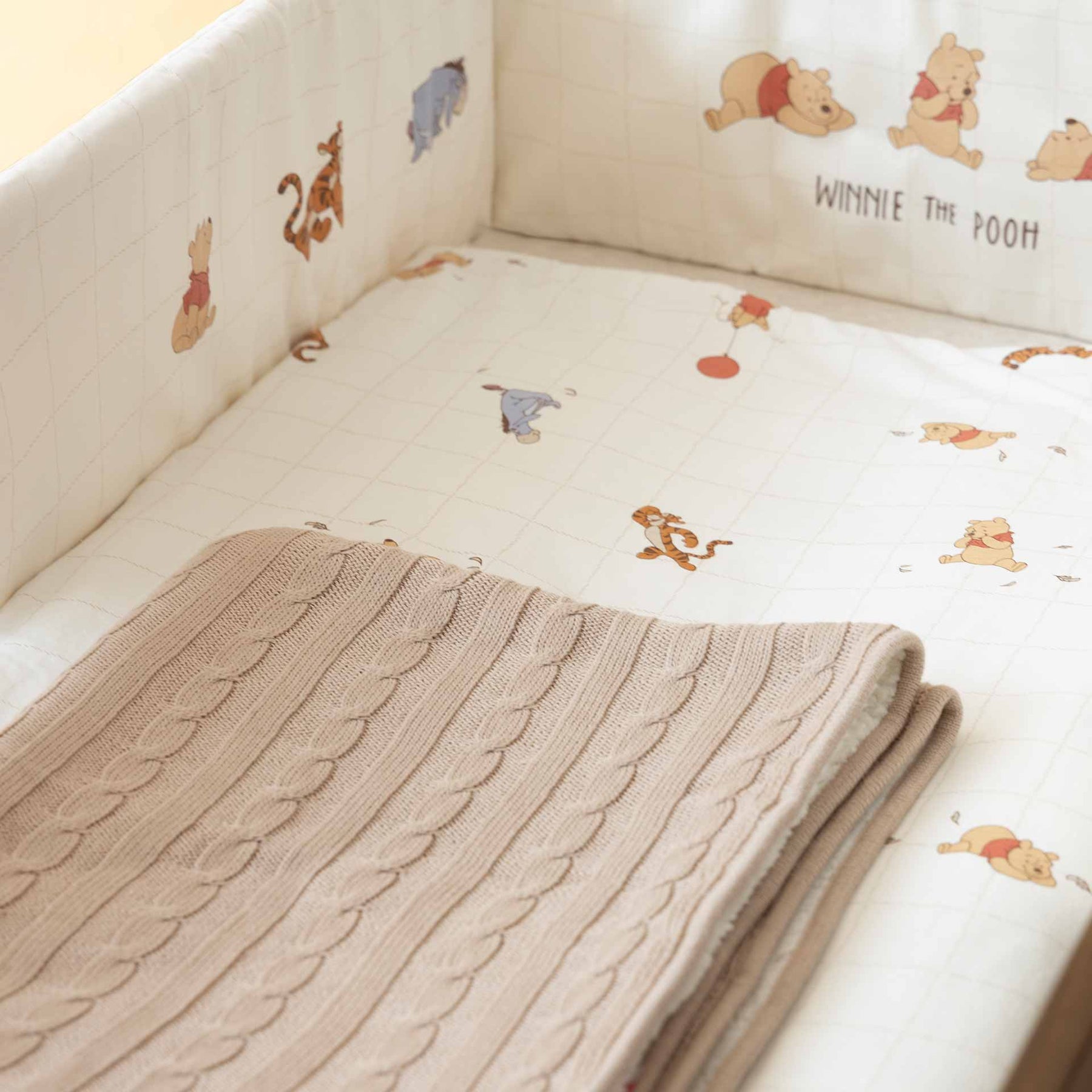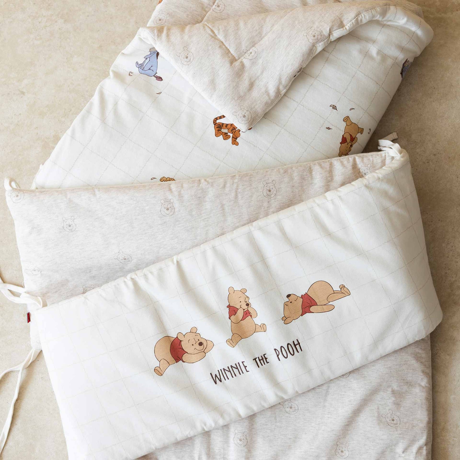 סט מצעים מפואר לעריסת תינוק/ת מתוך קולקציית החורף החדשה בעיצוב דמותו של פו הדב. הסט כולל מגן ראש במידה 28X192 סמ 100% כותנה+ מילוי 100% הוליפייבר שמיכה דו צדדית 115X85 סמ 100% כותנה+ מילוי 100% הוליפייבר סדין 100% כותנה במידה 65X128 סמ.