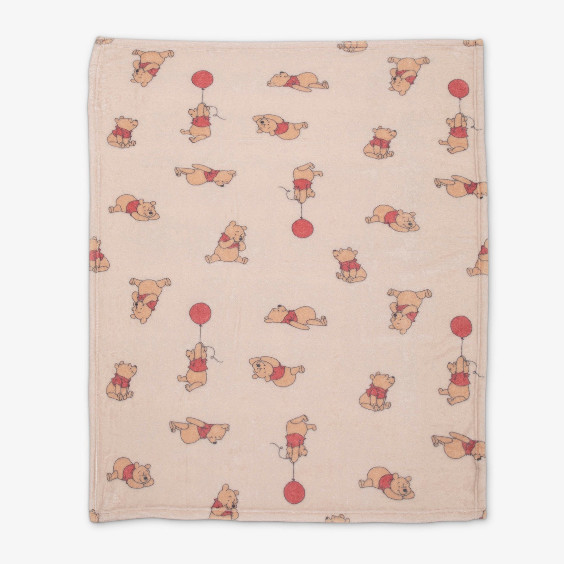 שמיכת פליז שכבה אחת בצבע קפוצ'ינו ובהדפס פו הדב. מידה 90X120 סמ.