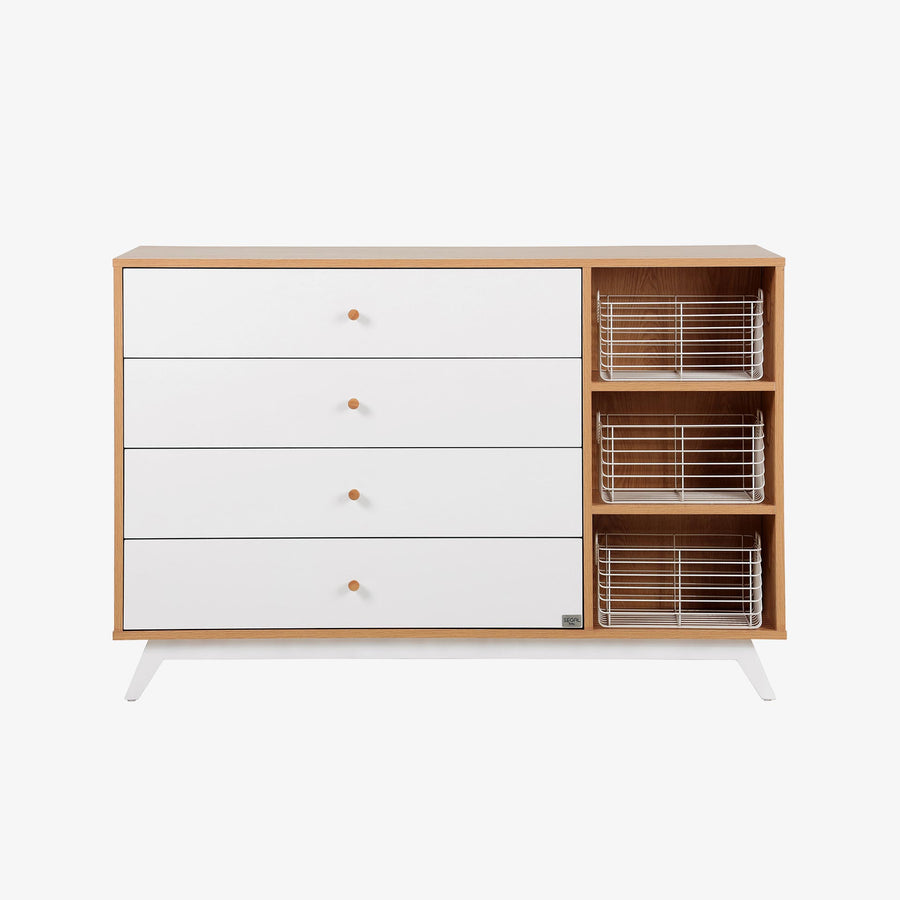 שידת תינוק דגם רימון 1.4 לבן + אלון אדום
