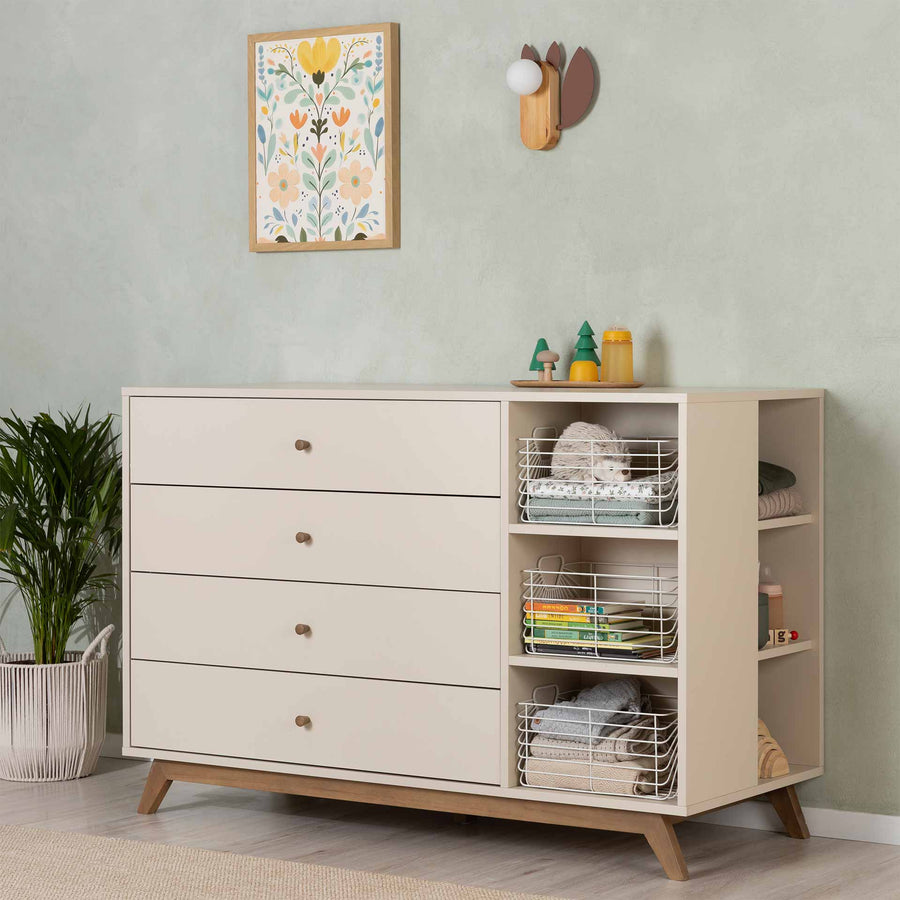 שידת תינוק דגם סיון 1.2 חלב שקדים + מעטפת אגוז