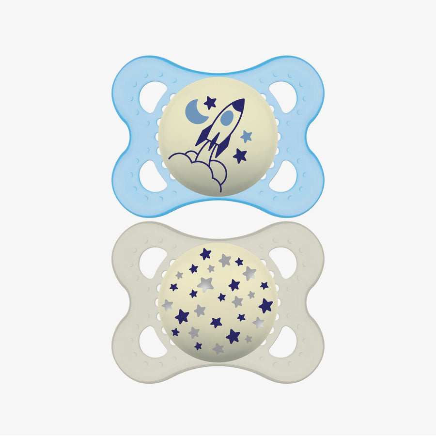 זוג מוצצים סיליקון 0-6 זוהרים בחושך תכלת