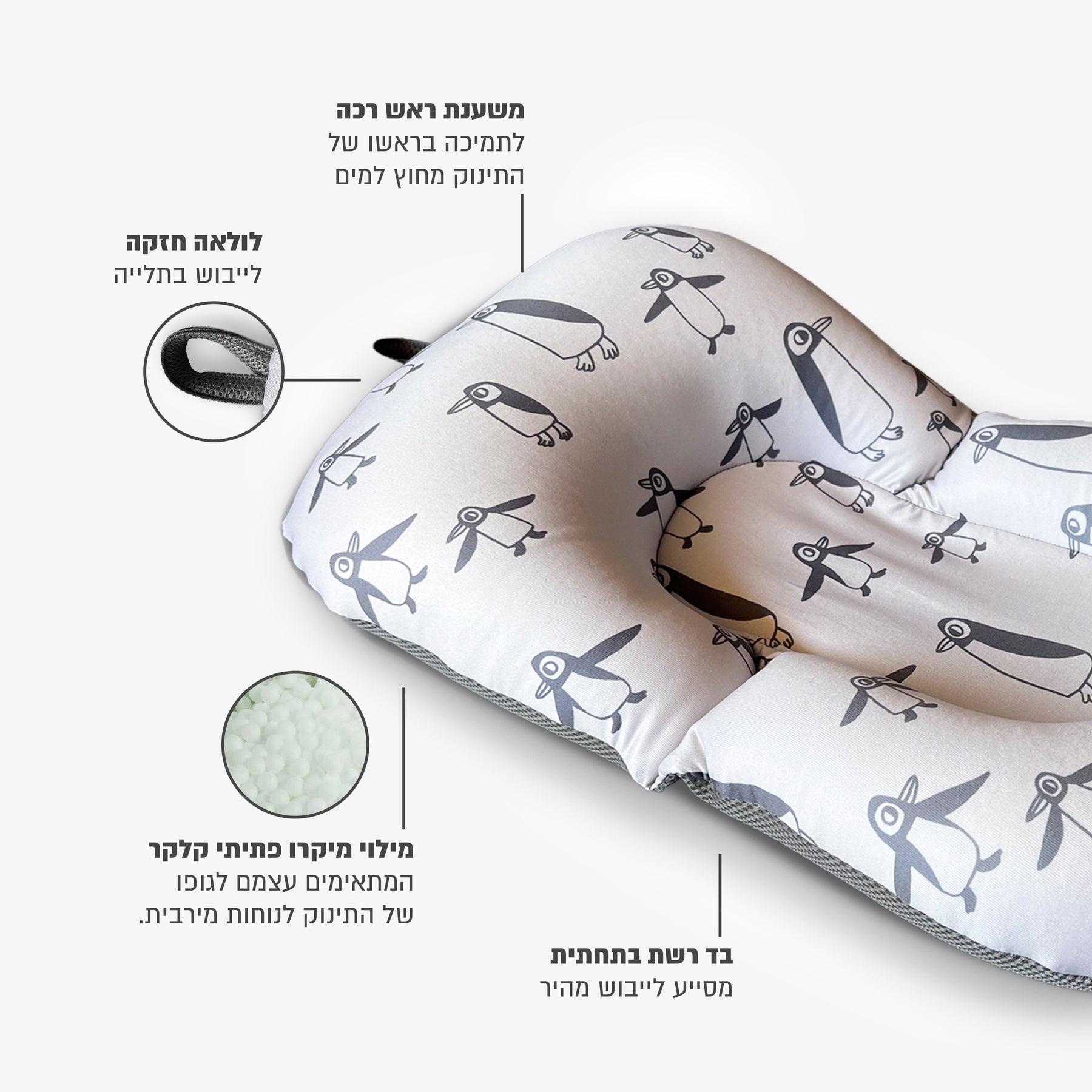 משענת ראש רכה לתמיכה בראשו של התינוק מחוץ למים.