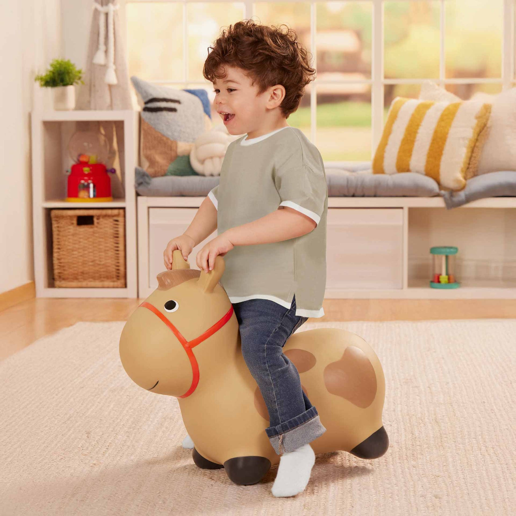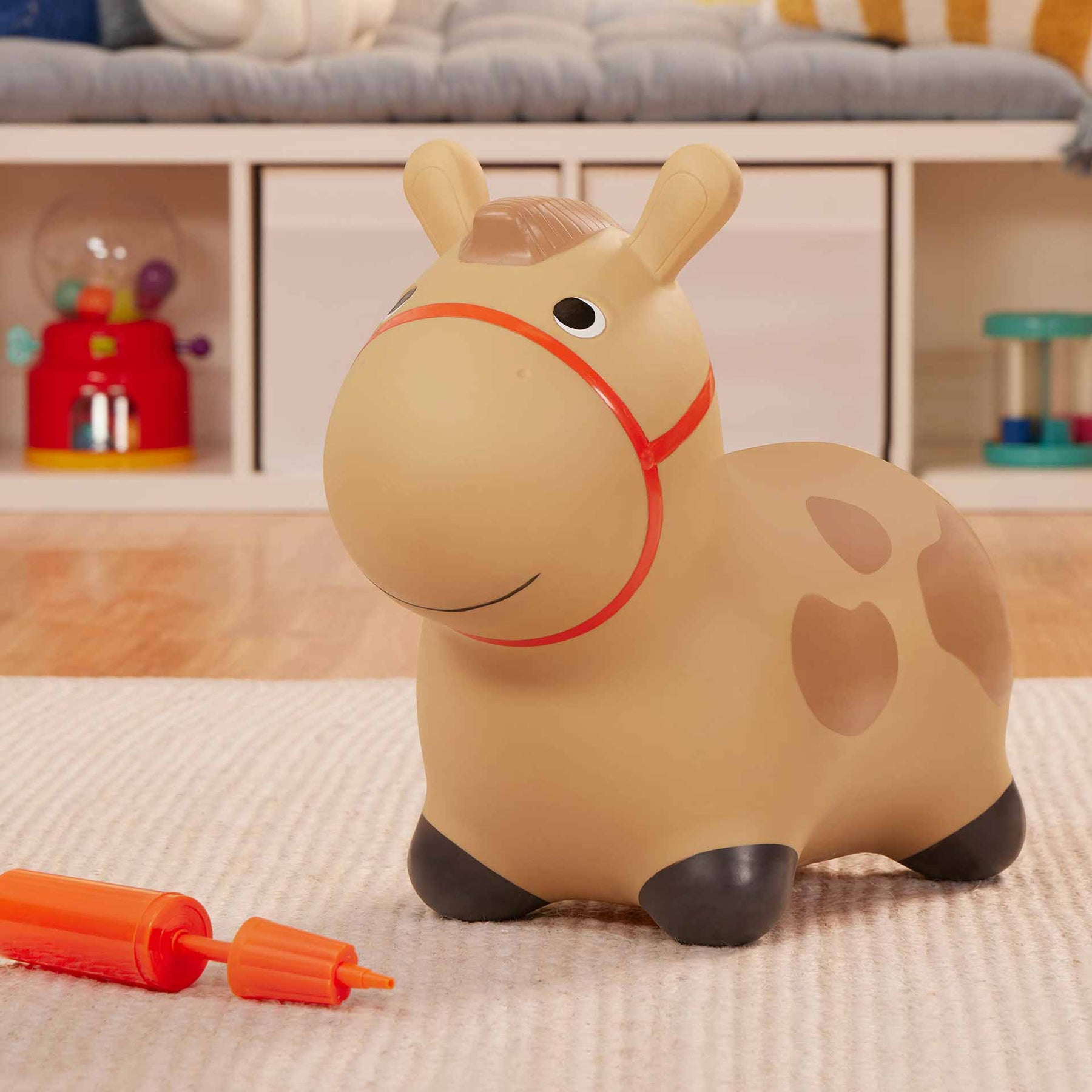 פוני מתנפח לרכיבה.כולל משאבה ידנית לניפוח .פוני זה לרכיבה הוא בדיוק בגודל המתאים לקטנטנים עם אוזניים המשמשות גם כמאחזים לרכיבה בטוחה יותר. יתרונות התפתחותיים: משחק פעיל מסייע בשיפור המוטוריקה הגסה שיווי המשקל והקואורדינציה. מתאים לפעוטות מגיל 18 חודשים ומעלה.