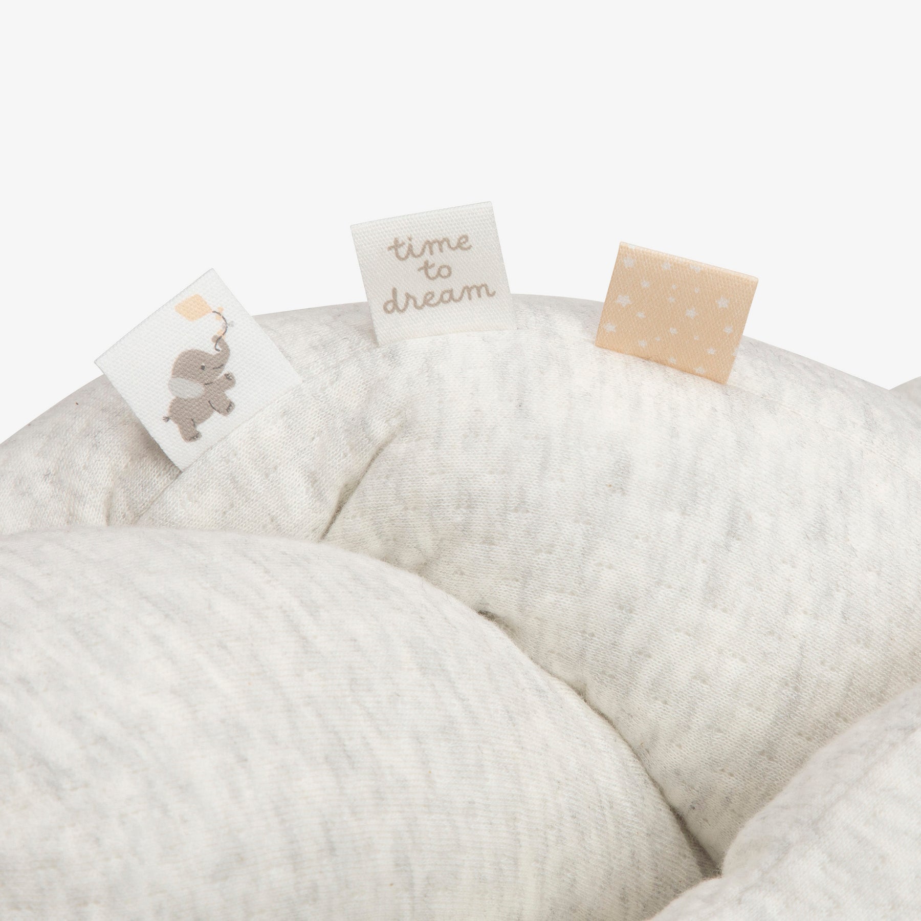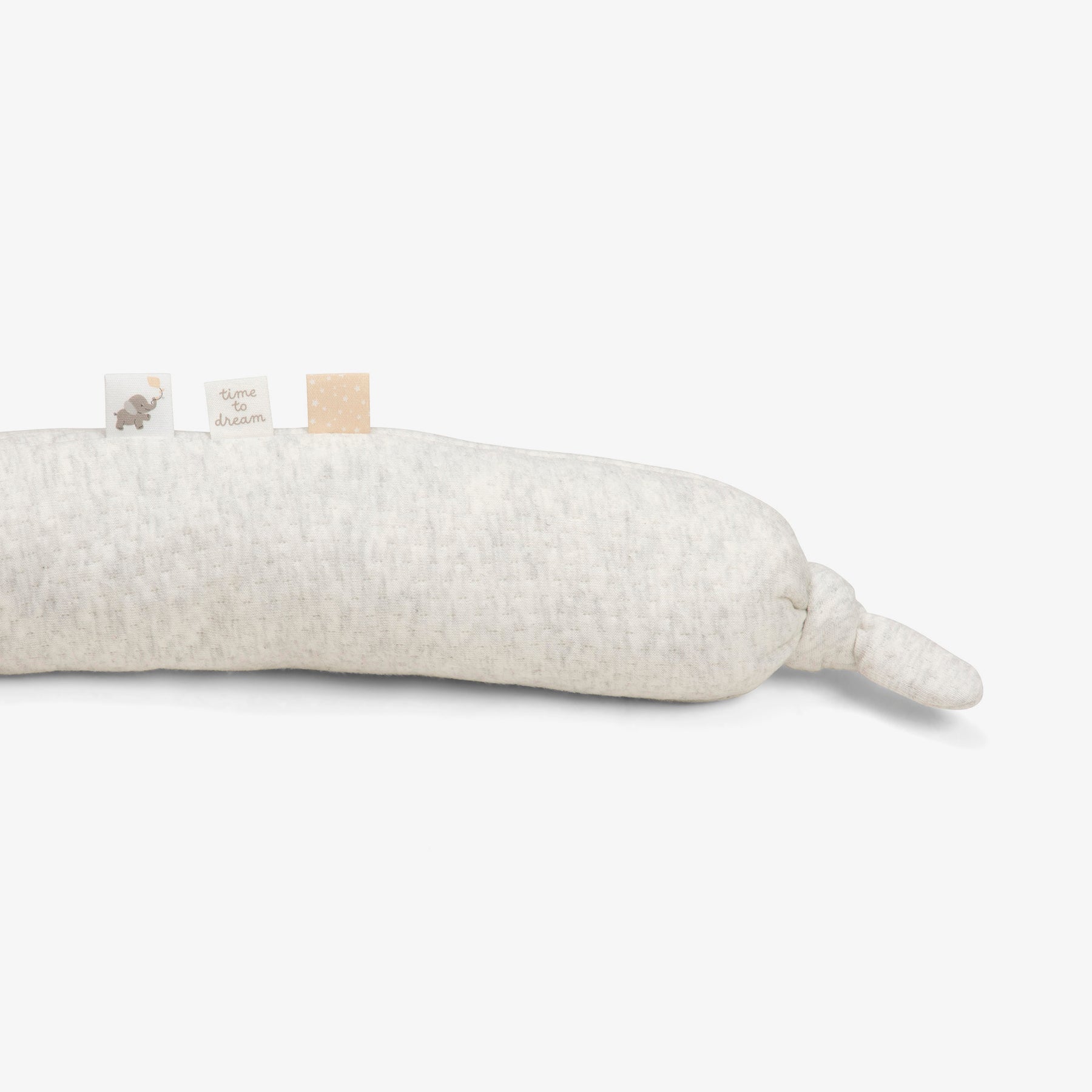 מיני נחשוש לעגלת התינוק/ת בצבע אפור בהיר. משמש לתיחום להגנה ולמשחק. 100% כותנה+ מילוי 100% פוליאסטר. מידה: 10X100 סמ.