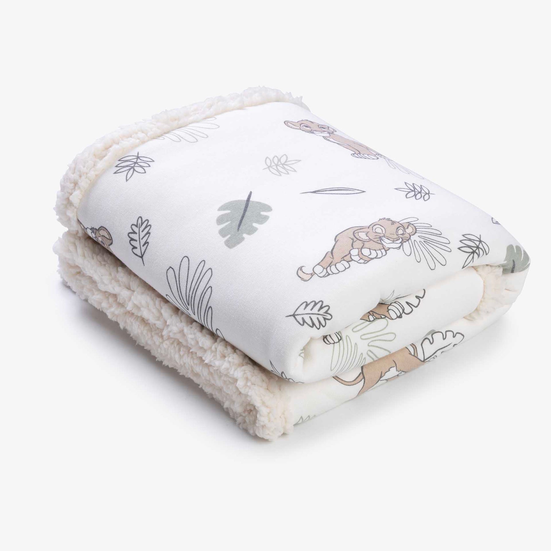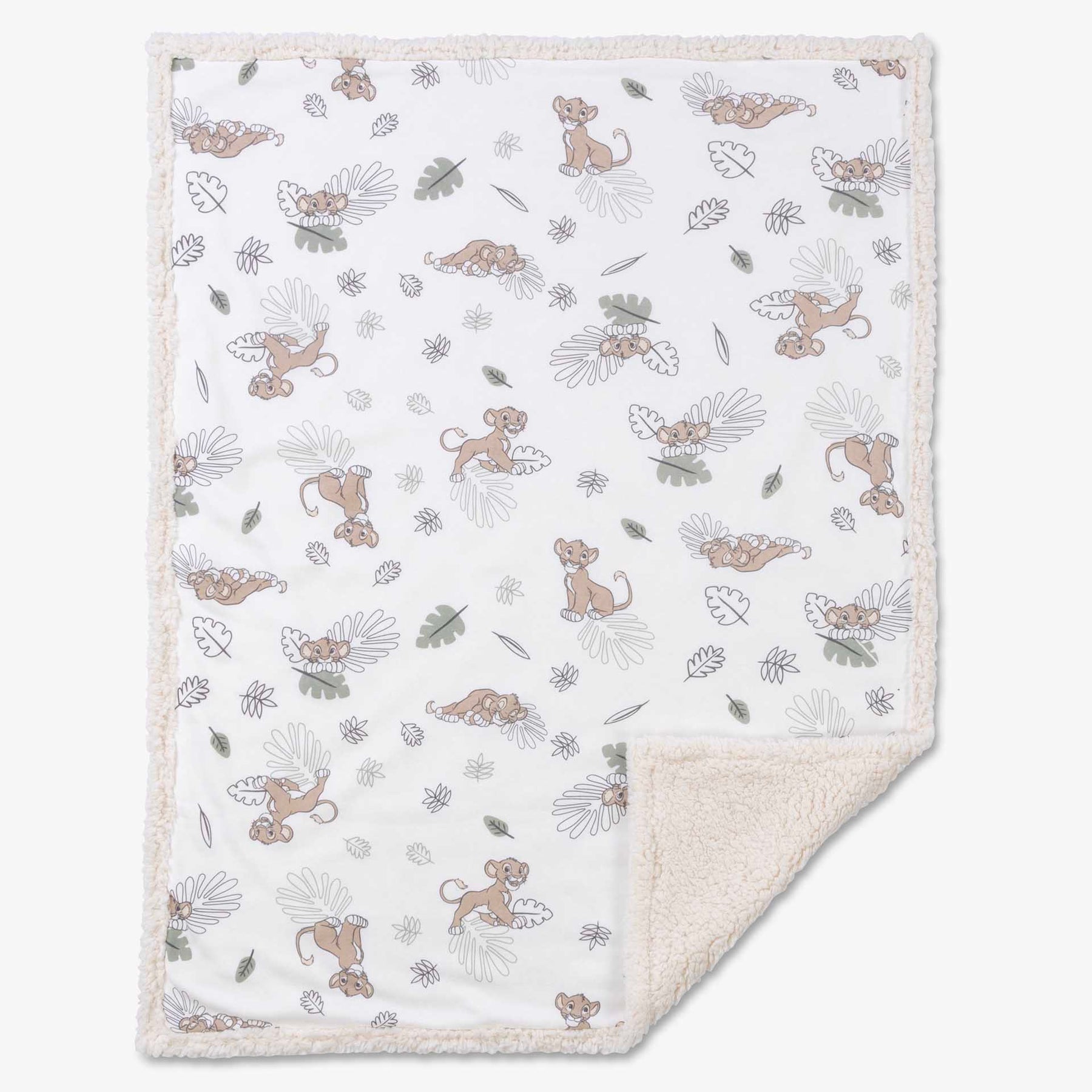 שמיכת פוטר דו- צדדית למיטת התינוק בהדפס סימבה ופרוות שרפא בצבע קפוצ'ינו. מידה: 90X120 סמ. הרכב הבד: 65% כותנה 35% פוליאסטר/ שרפא 100% פוליאסטר.