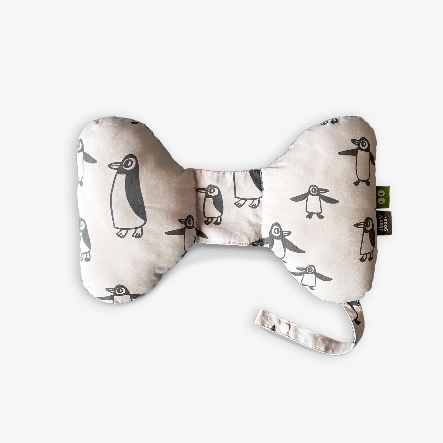 כרית צוואר בצורת פרפר בשילוב תפסן למוצץ עשויה מבד כותנה רך ונעים למגע במילוי אקרילן איכותי השומר על נפחו. כנפי הפרפר תומכות בנוחות בראשו של התינוק משני צדדיו בעוד חלקה האחורי של הכרית שטוח לשמירה על צוואר התינוק בצורה בטוחה.
