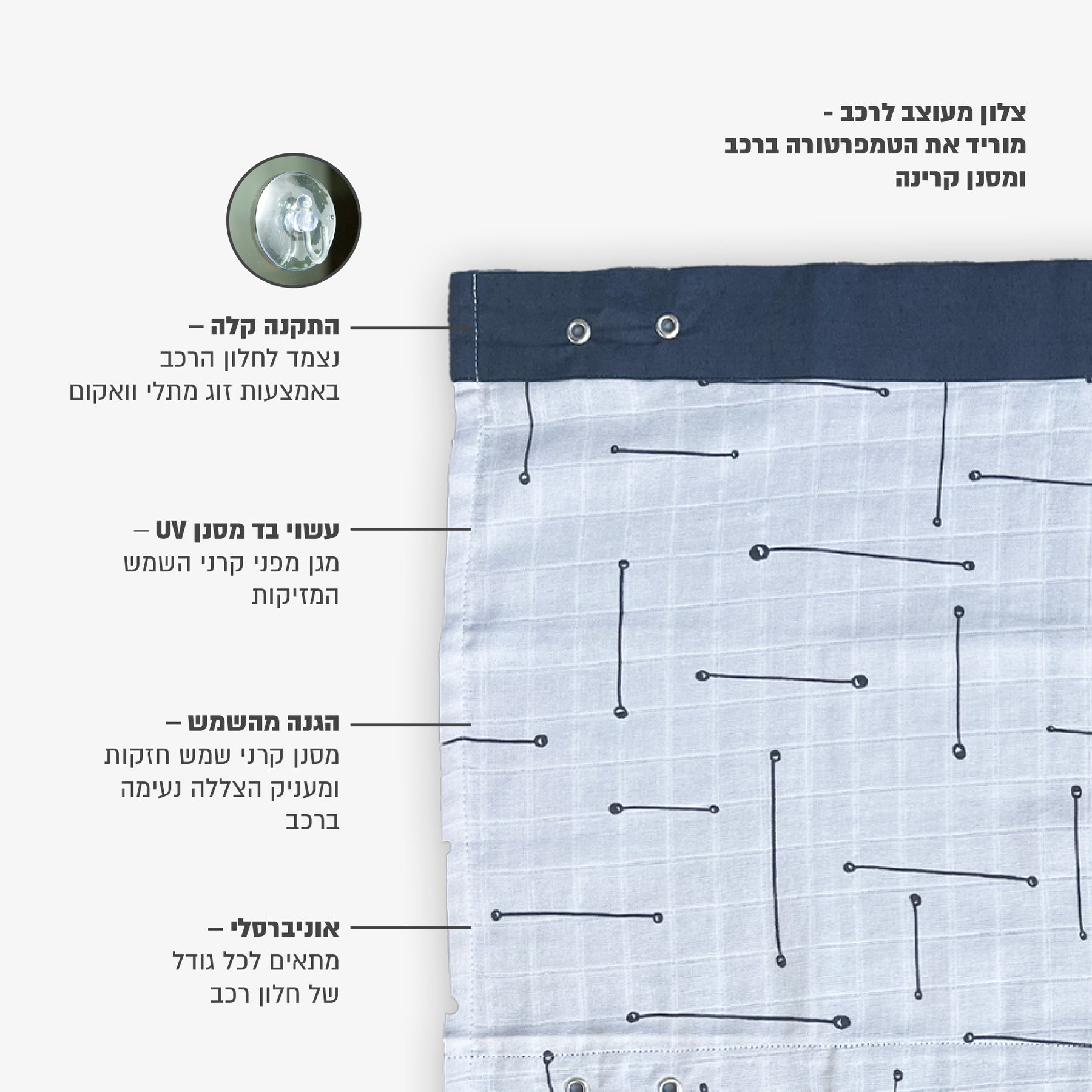 מגן על ילדך מפני השמש בזמן הנסיעה חוסם את השמש ומאפשר מעבר אור רך.