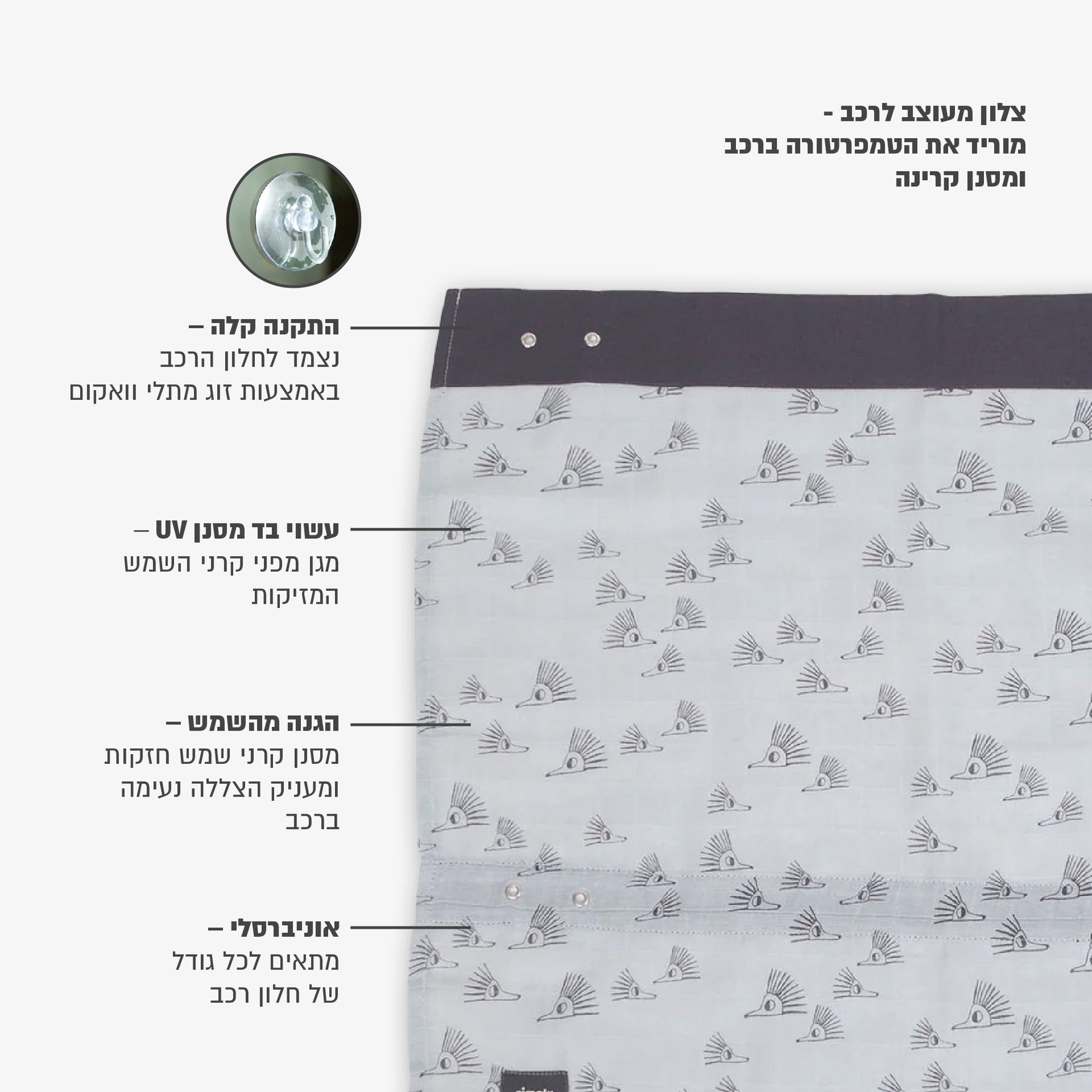 מגן על ילדך מפני השמש בזמן הנסיעה חוסם את השמש ומאפשר מעבר אור רך.