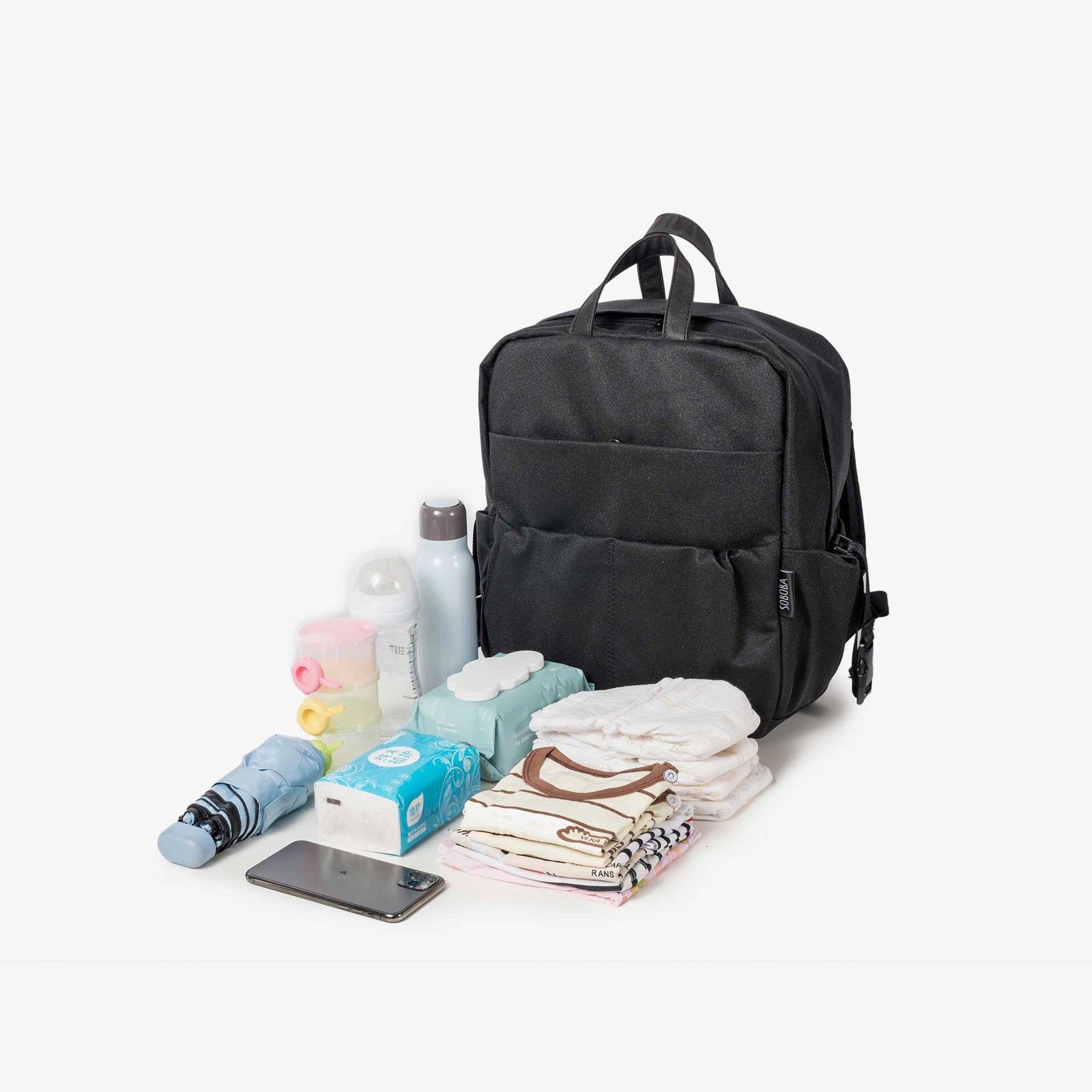 תיק החתלה אופנתי נתלה על העגלה עם רצועות גב מפרופדות ותאי איחסון גדולים ומרווחים. מידות: 103636 סמ נפח 14L