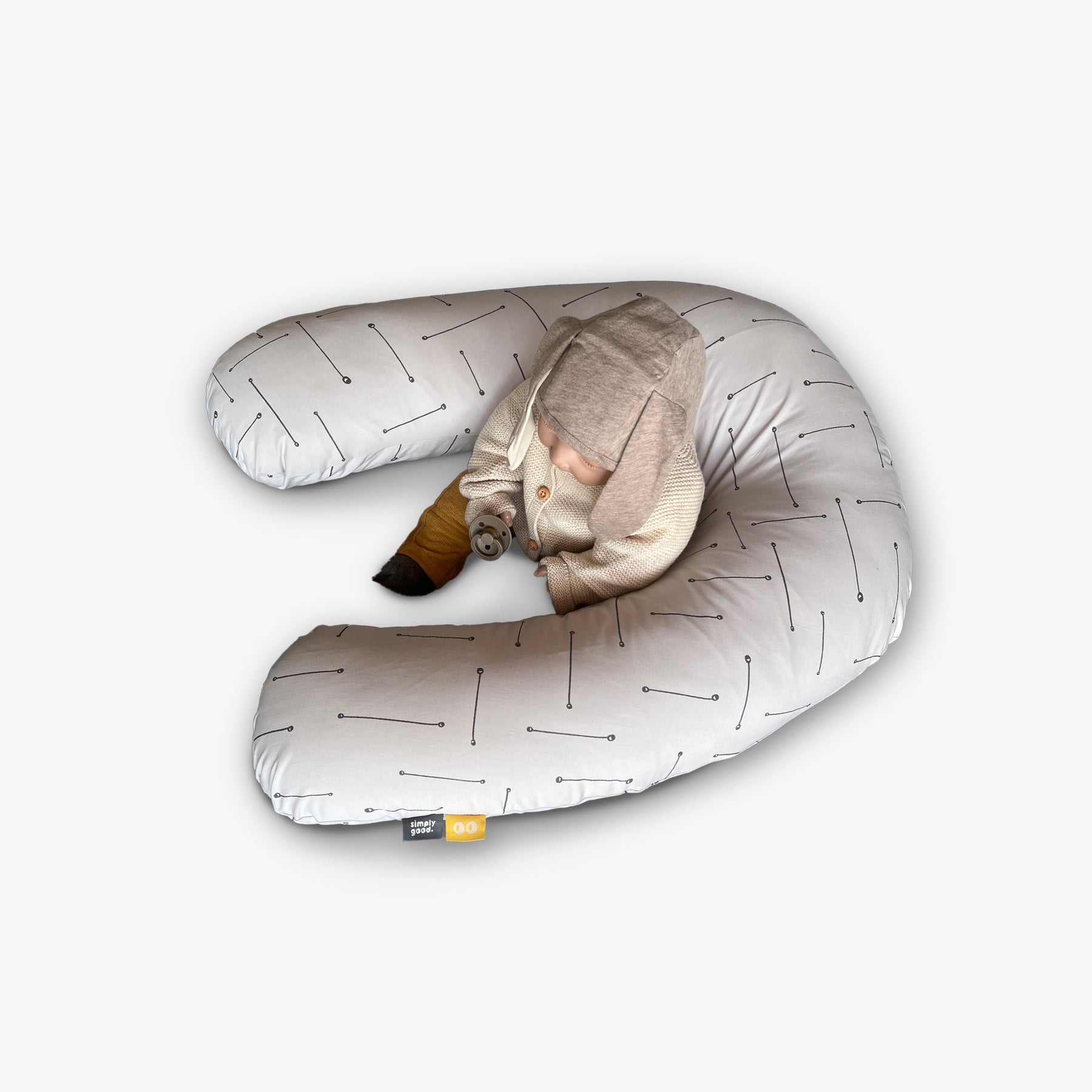 מומלצת גם בזמן ההריון להקלת לחץ בגב התחתון ע י הנחתה בין הירכיים בזמן שכיבה על הצד. בשלב מאוחר יותר הכרית משמשת למשחק ותרגול עם התינוק. מגיעה במגוון דפוסים ייחודיים ל Simply good. הציפה החיצונית ניתנת להסרה וכביסה 30 ב מעלות.