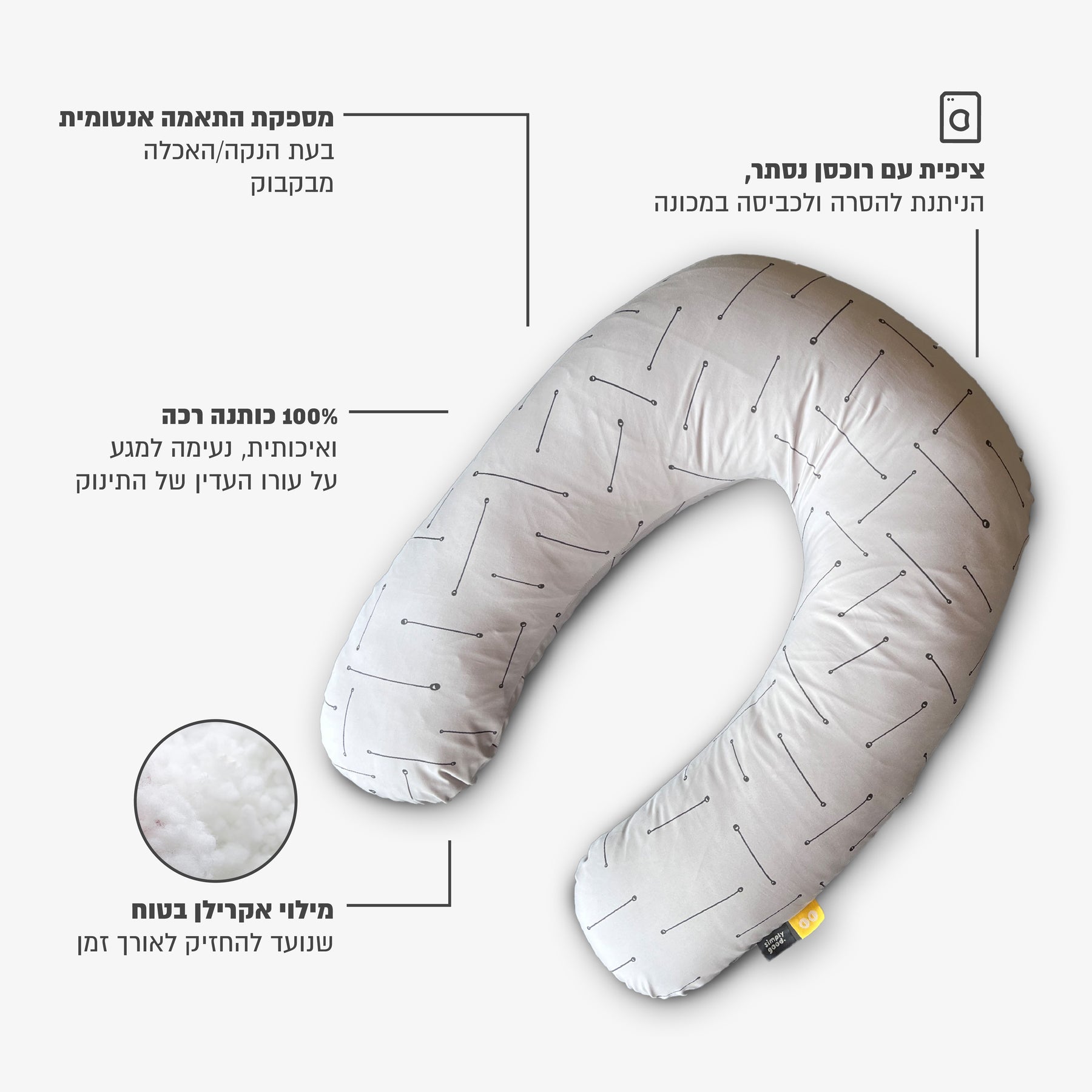 כרית הנקה התומכת בגב התחתון בזמן ההנקה או האכלה מבקבוק ומאפשרת האכלה רגועה ונעימה לאם ולתינוק. הכרית עוטפת את המותן ומספקת משענת בעת האכלה וחוסכת ממך הנקה בגב כפוף. עשויה מבד כותנה איכותי ונעים למגע במילוי אקרילן איכותי ורך שאינו מאבד מנפחו ומעניק תמיכה לגוף התינוק.