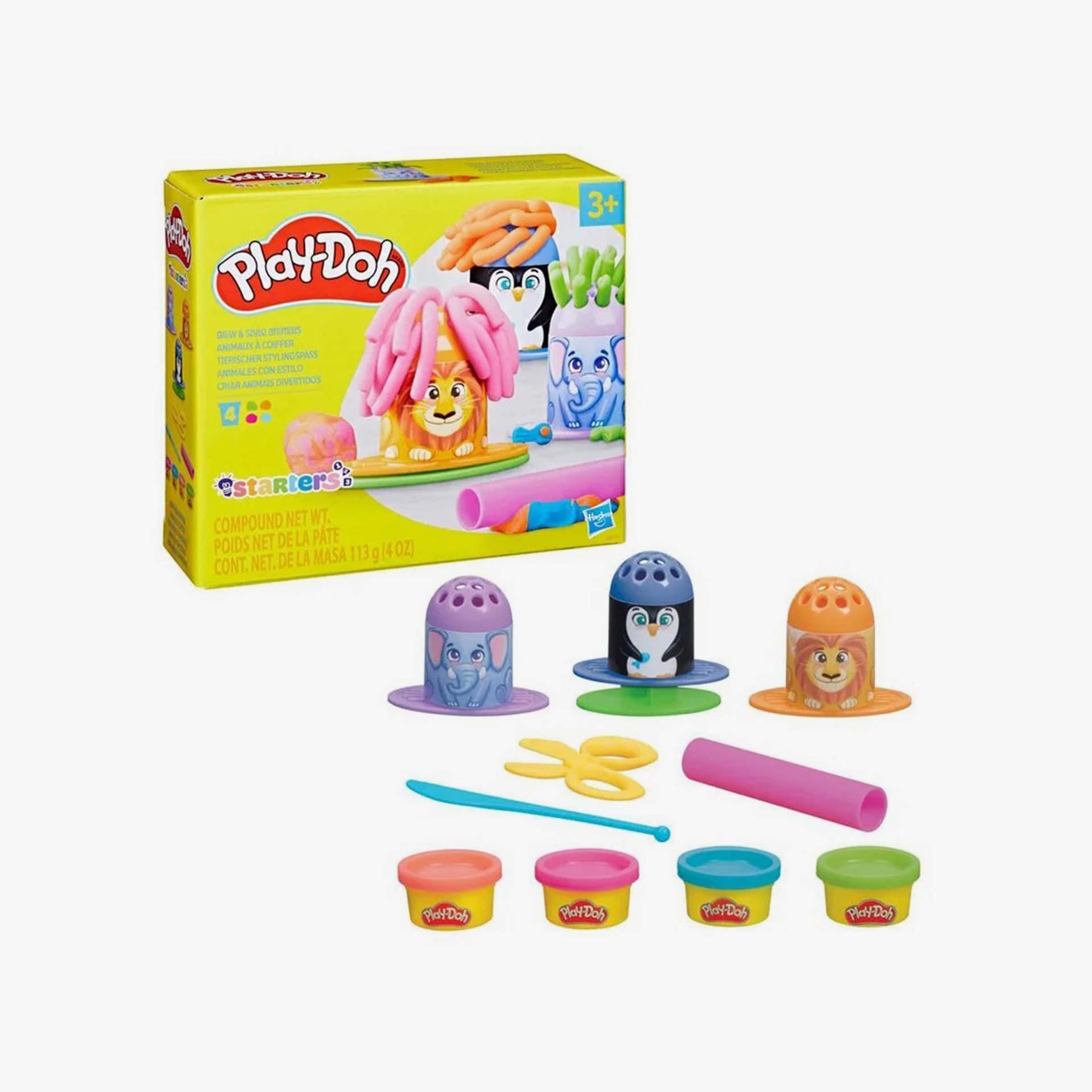 מארז בצק חיות בסטייל של פליידו.מכיל 4 מיכלי בצק בצבעים שונים במשקל כולל של 113 גרם.מכיל 3 דמויות חות שונות ואביזרים לעיצוב הבצק. מתאים גיל 3 שנים ומעלה. גודל המארז 15.5X18 סמ.