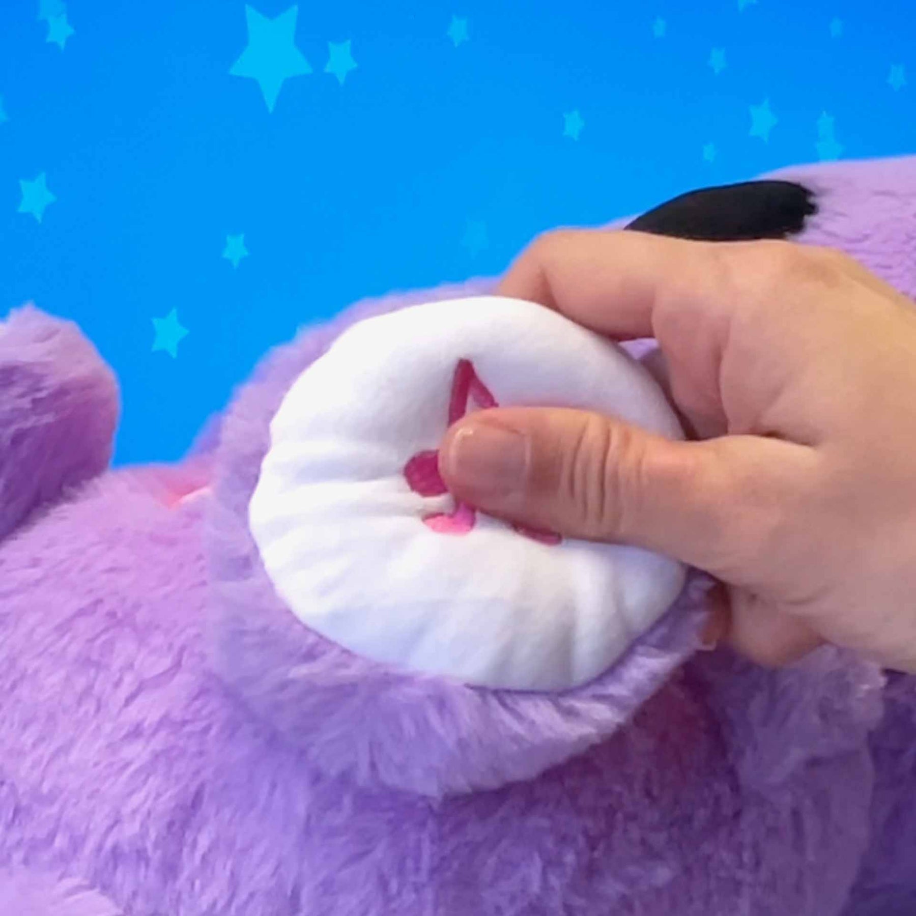 בובת פרווה רכה ונעימה שמדמה נשימה עדינה באמצעות קולות ותזוזה של החזה