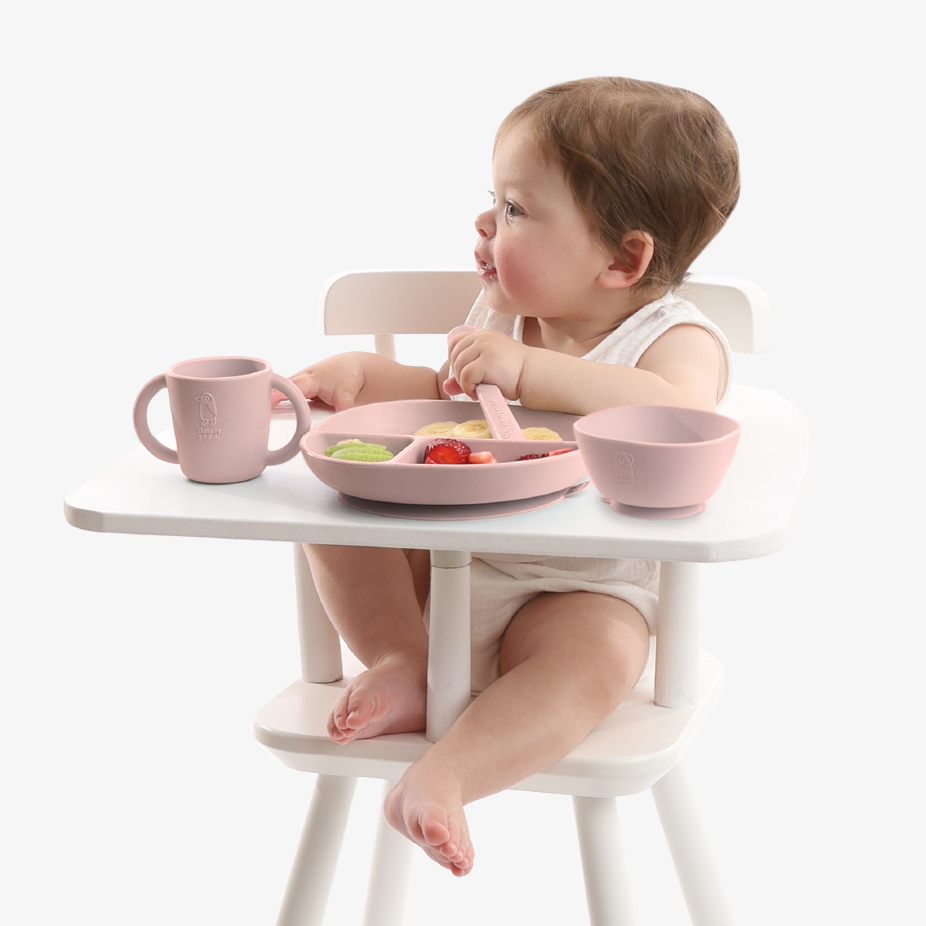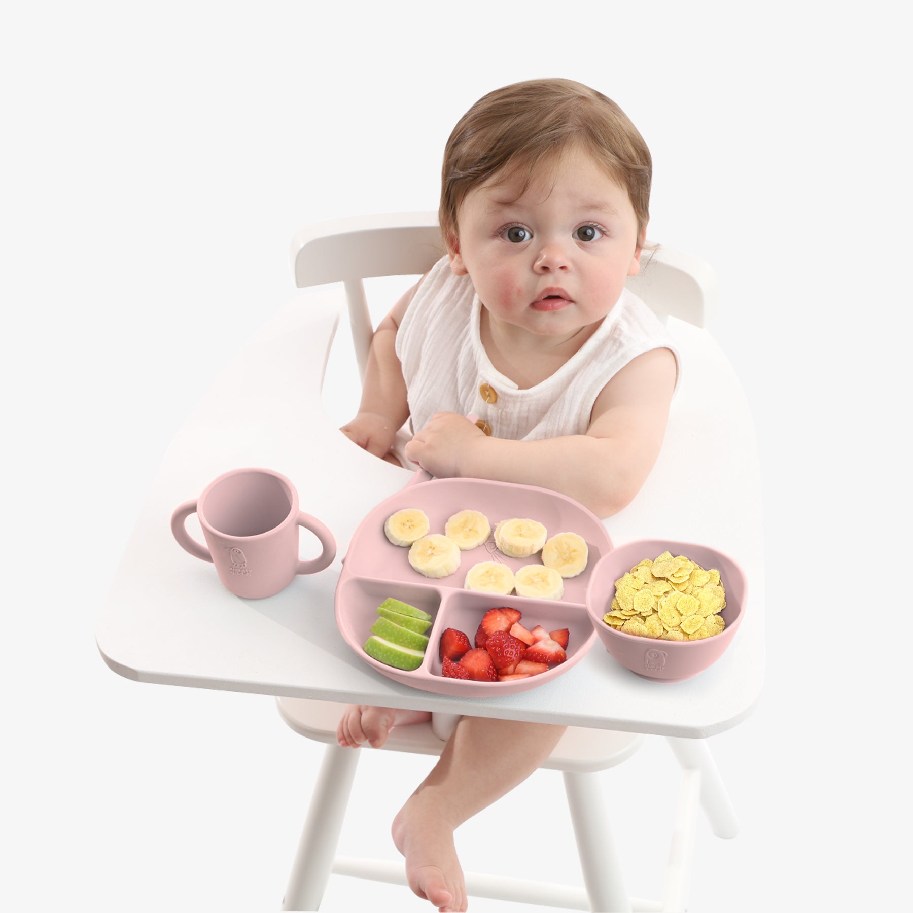 סט כלי האוכל הראשון עשוי 100% סיליקון איכותי והוא מותאם לשימוש מגיל ארבעה חודשים ומעלה. הפריטים בסט מאוירים במינימליסטיות המוכרת של המותג והודות לכך היא עדכנית ורלוונטית בכל גיל