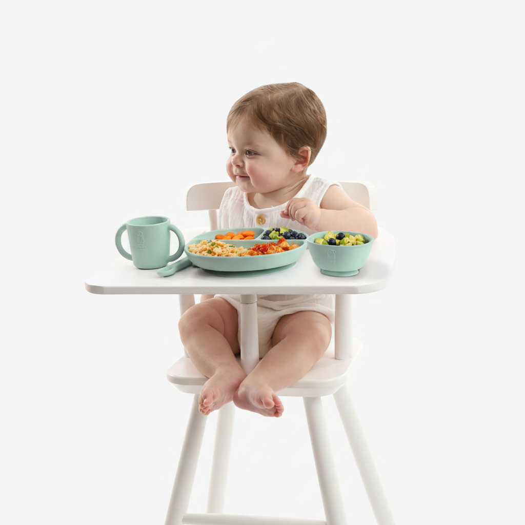 סט כלי האוכל הראשון עשוי 100% סיליקון איכותי והוא מותאם לשימוש מגיל ארבעה חודשים ומעלה. הפריטים בסט מאוירים במינימליסטיות המוכרת של המותג והודות לכך היא עדכנית ורלוונטית בכל גיל