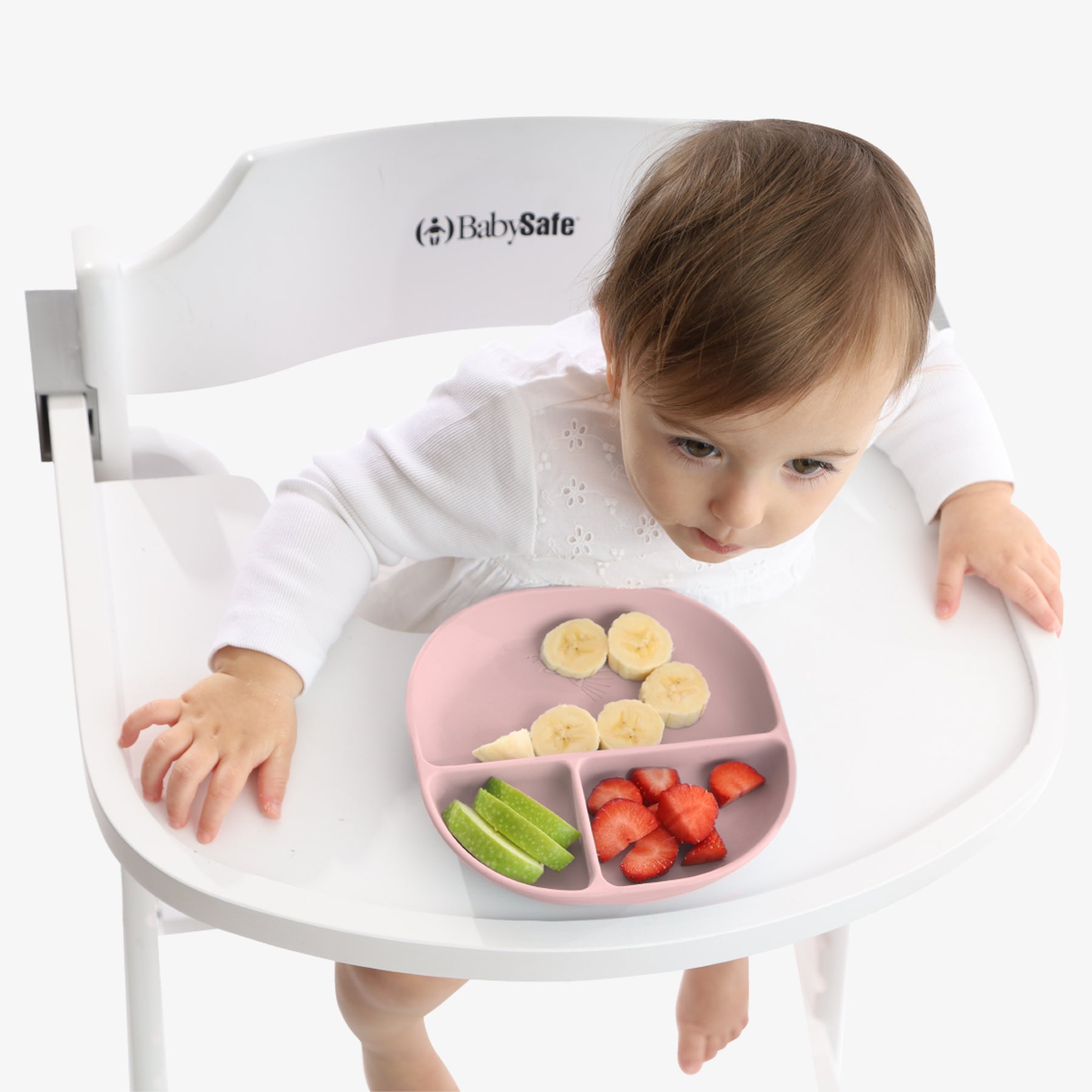 הצלחת מחולקת לשלושה תאים מעודדת את ההורה להגיש סוגים שונים של מאכלים מזינים