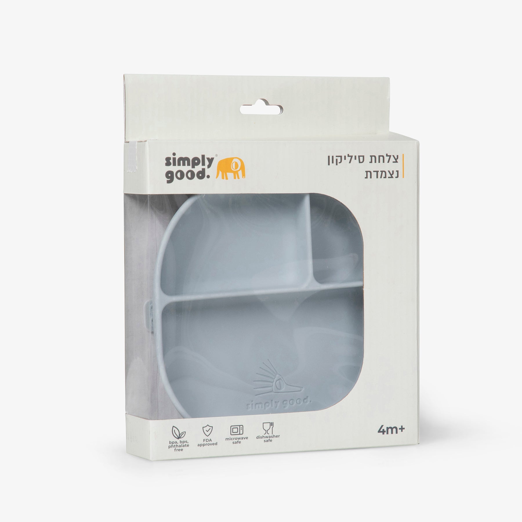 צלחת סיליקון מחולקת מאויירת במינימליסטיות המוכרת של סימפלי גוד עדכנית ורלוונטית לכל גיל.
