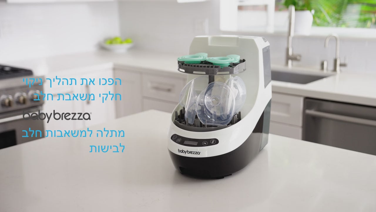 המתלה מאפשר שטיפה בעוצמה ובדיוק את כל חלקי משאבת החלב כולל משפכים מגינים כוסות איסוף שסתומים/ממברנות ובקבוקי אחסון
