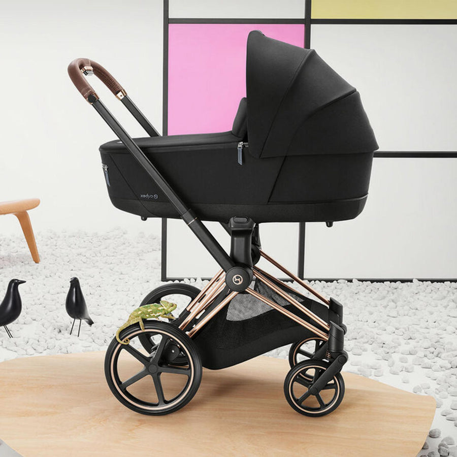 עגלת פריאם 4 שלד חשמלי e רוזגולד ידית חומה Priam 4