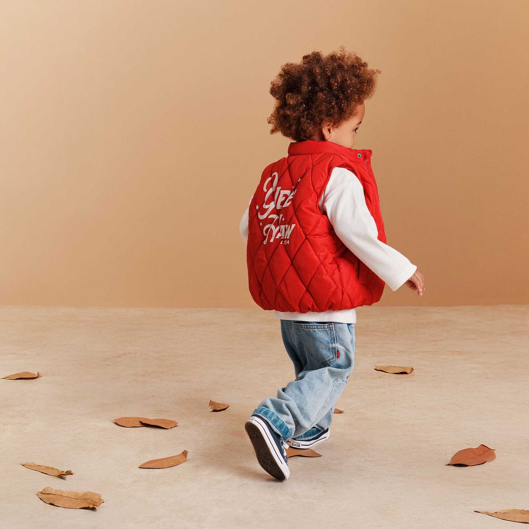 וסט פאפר מרופד בצבע אדום עם פאץ' בכיתוב הספרה 1. לוסט בטנת פרווה וסגירת רוכסן.