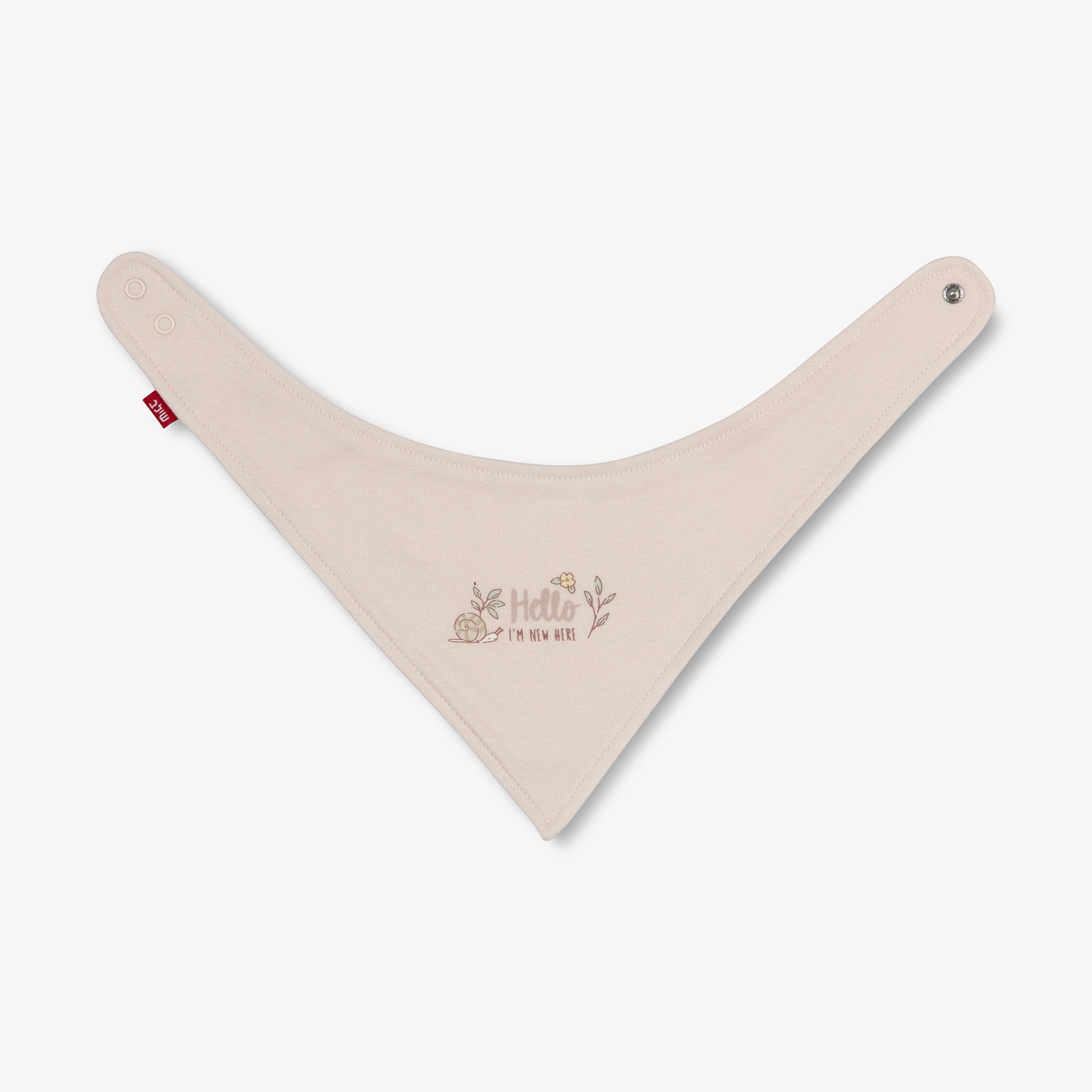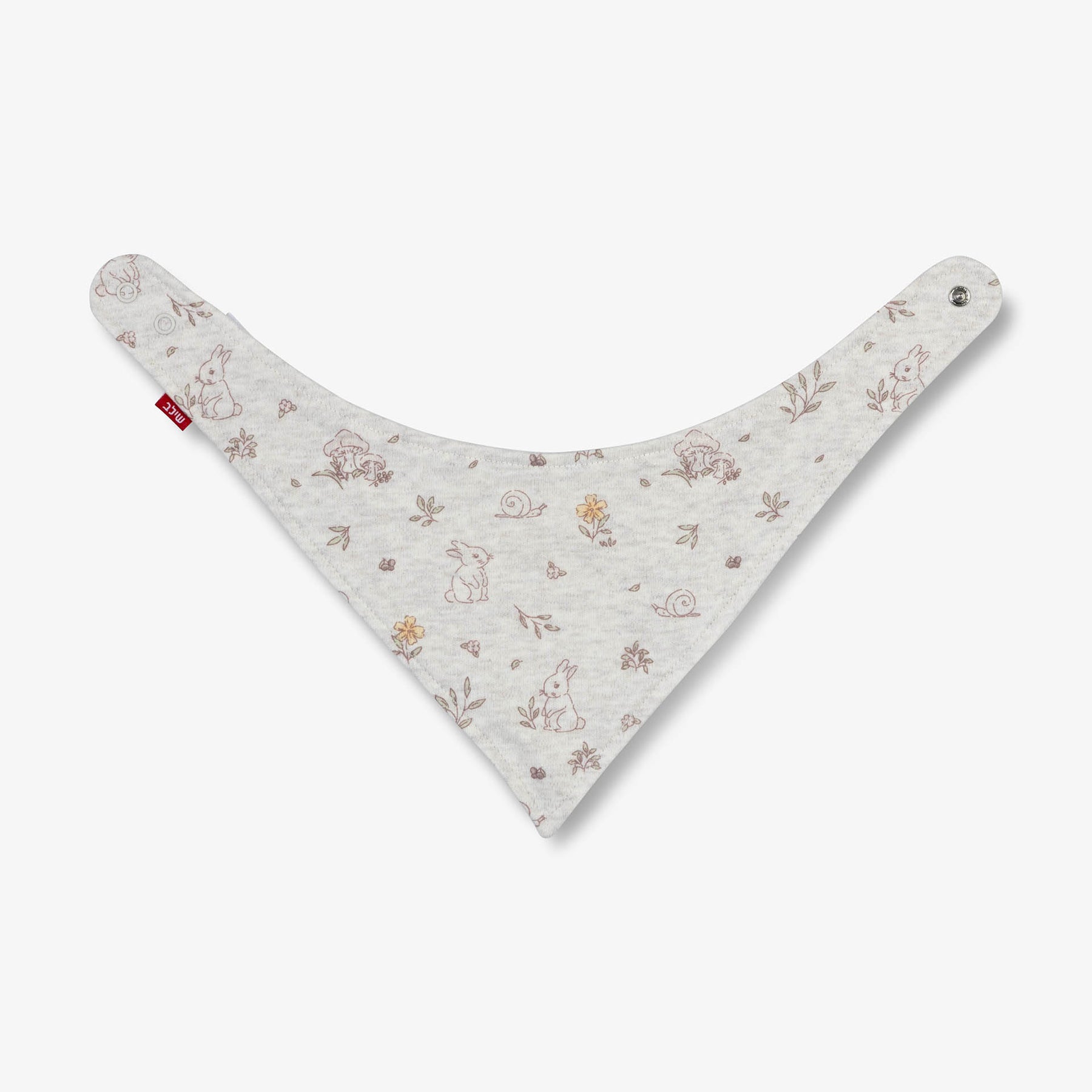 מארז 2 סינרים בסגנון בנדנה בצבעים אפור בהיר ואפרסק בהדפסים שונים של ארנבים וחלזונות.