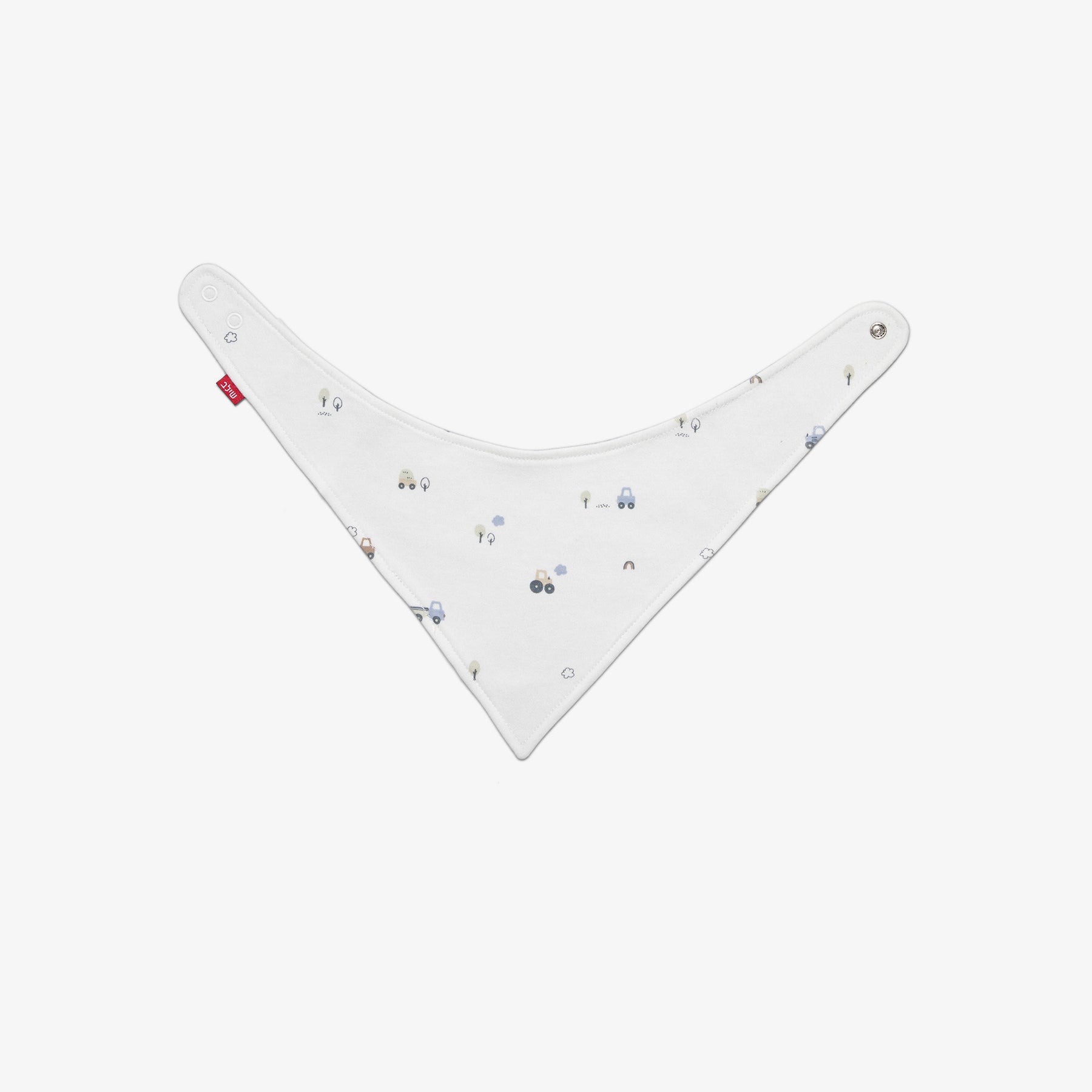 מארז 2 סינרים בסגנון בנדנה בצבעים שמנת וכחול לילה בהדפסים שונים של טרקטורים.