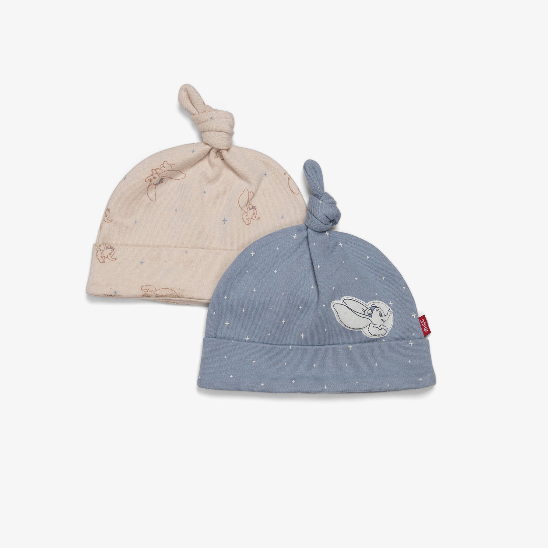 מארז 2 כובעים ראשונים בצבעי קרם וכחול מעושן בהדפס דמבו.