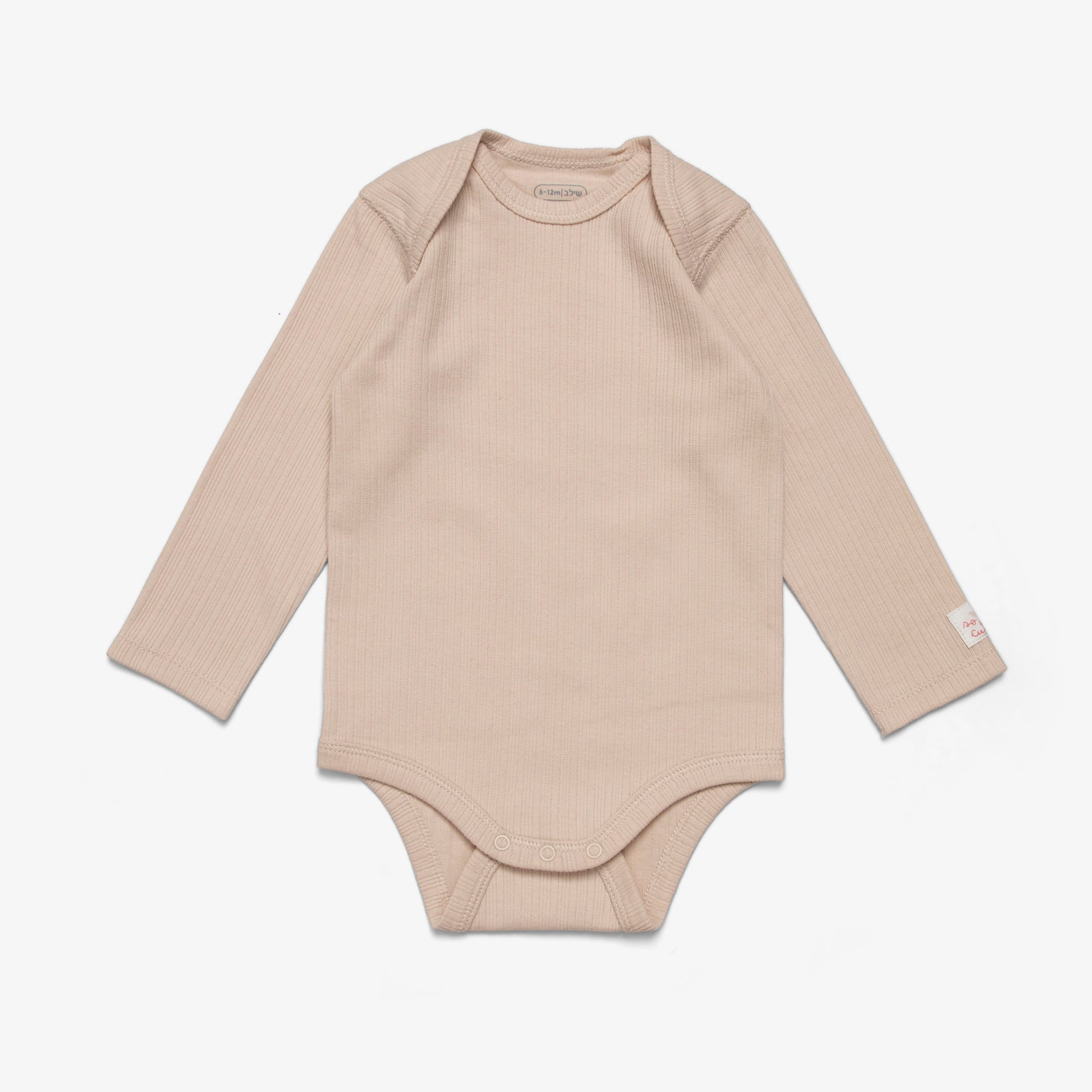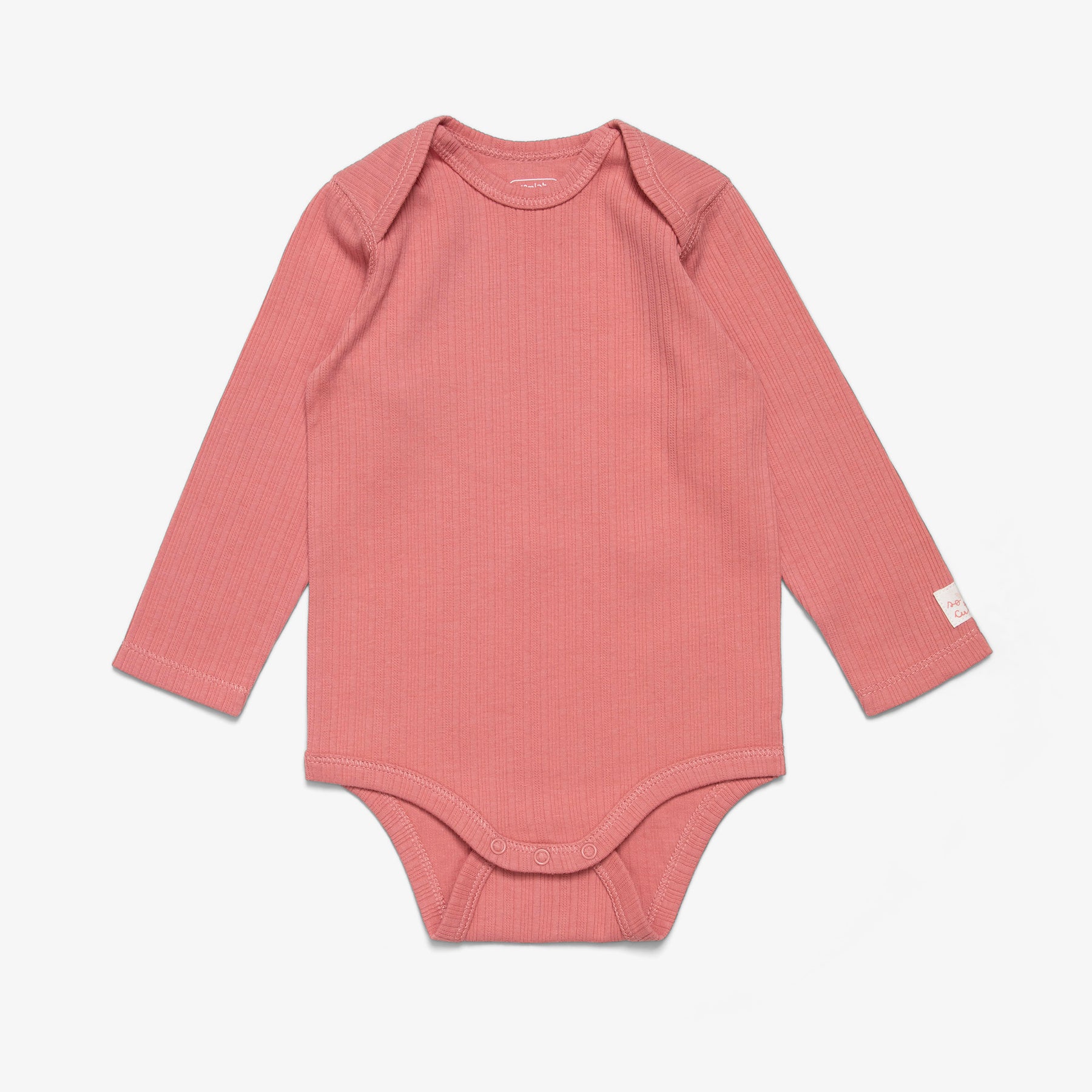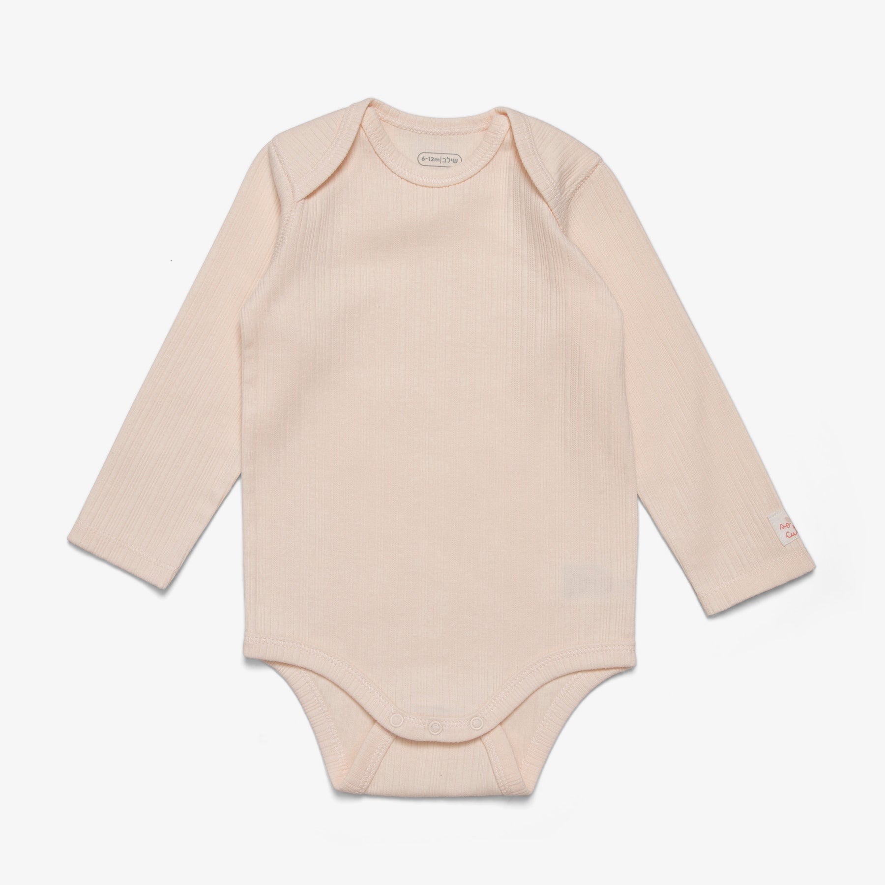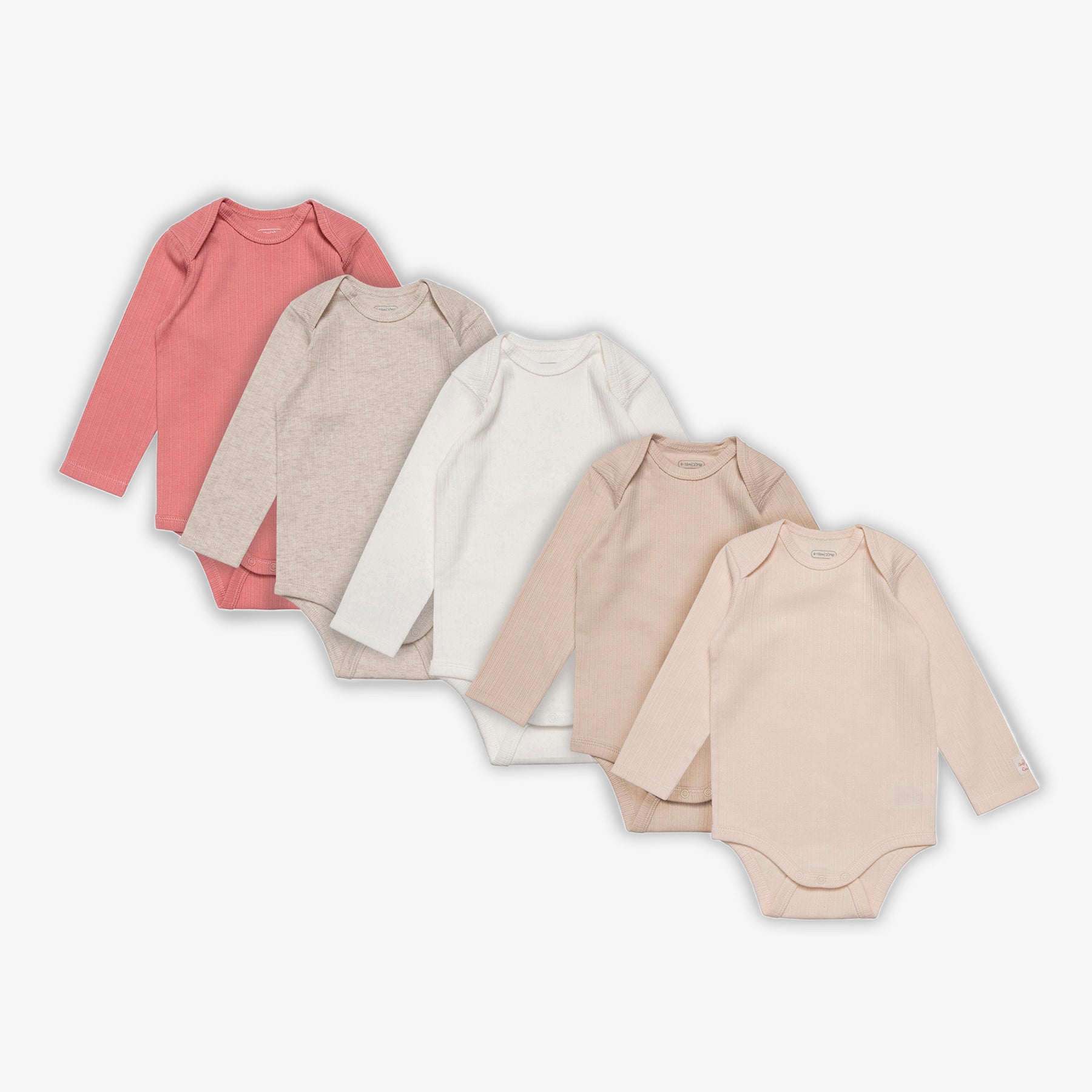 מארז 5 בגדי גוף ארוכים בגווני ורוד וקרם עם פאץ' בכיתוב אנגלית על השרוול. לבגדים סגירת לחצניות.