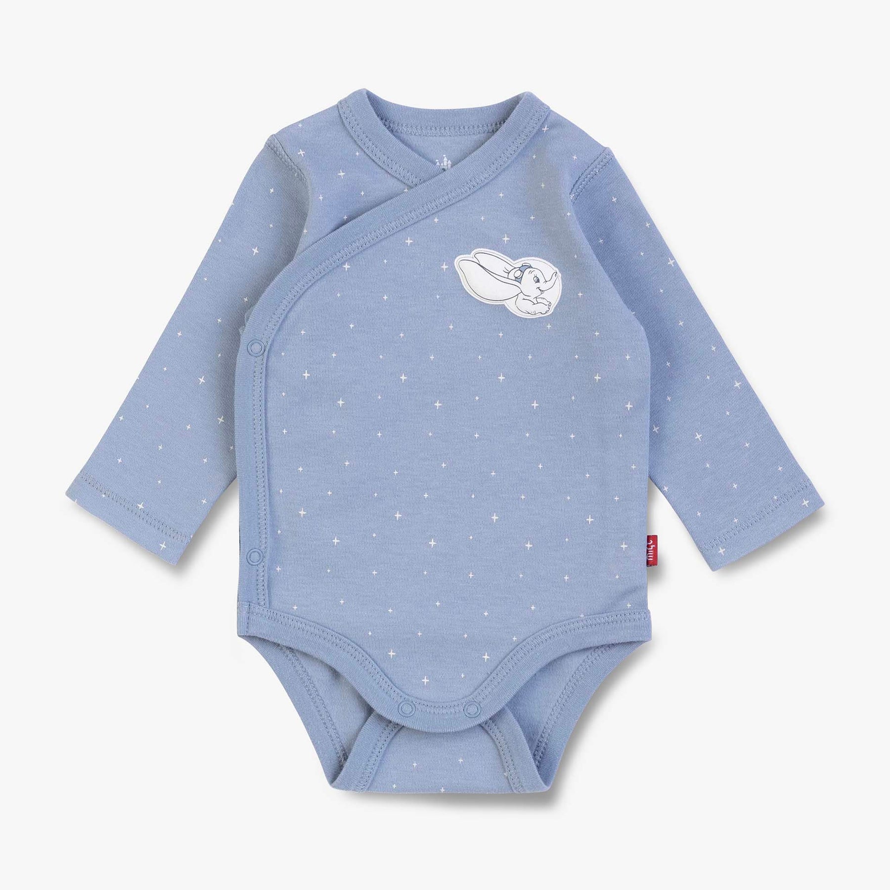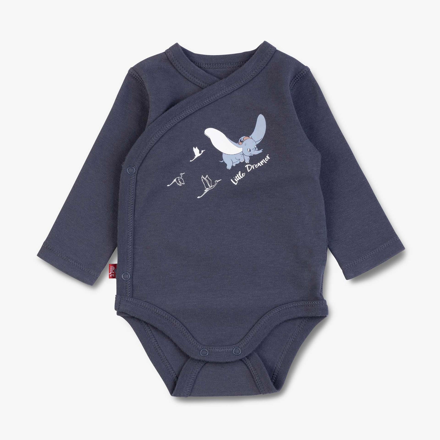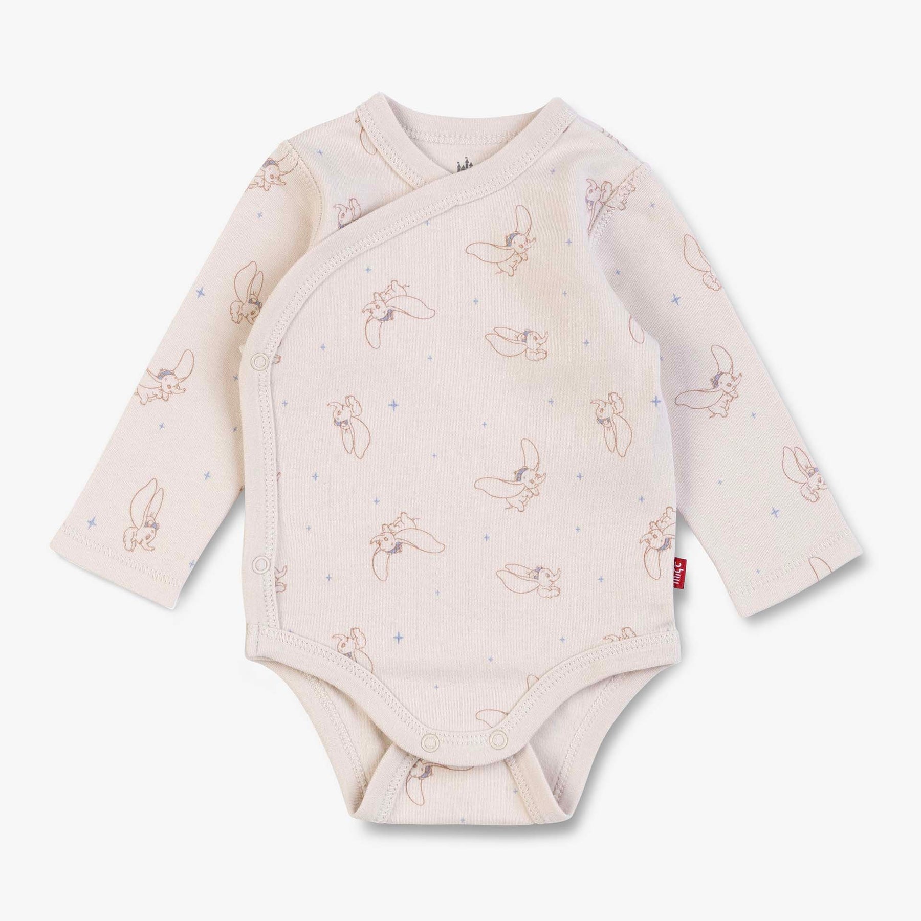 מארז 5 בגדי גוף מעטפת ארוכים בצבעי קרם וכחול ובהדפסים מתוך דמבו. לבגדים סגירת לחצניות להלבשה קלה ונוחה.