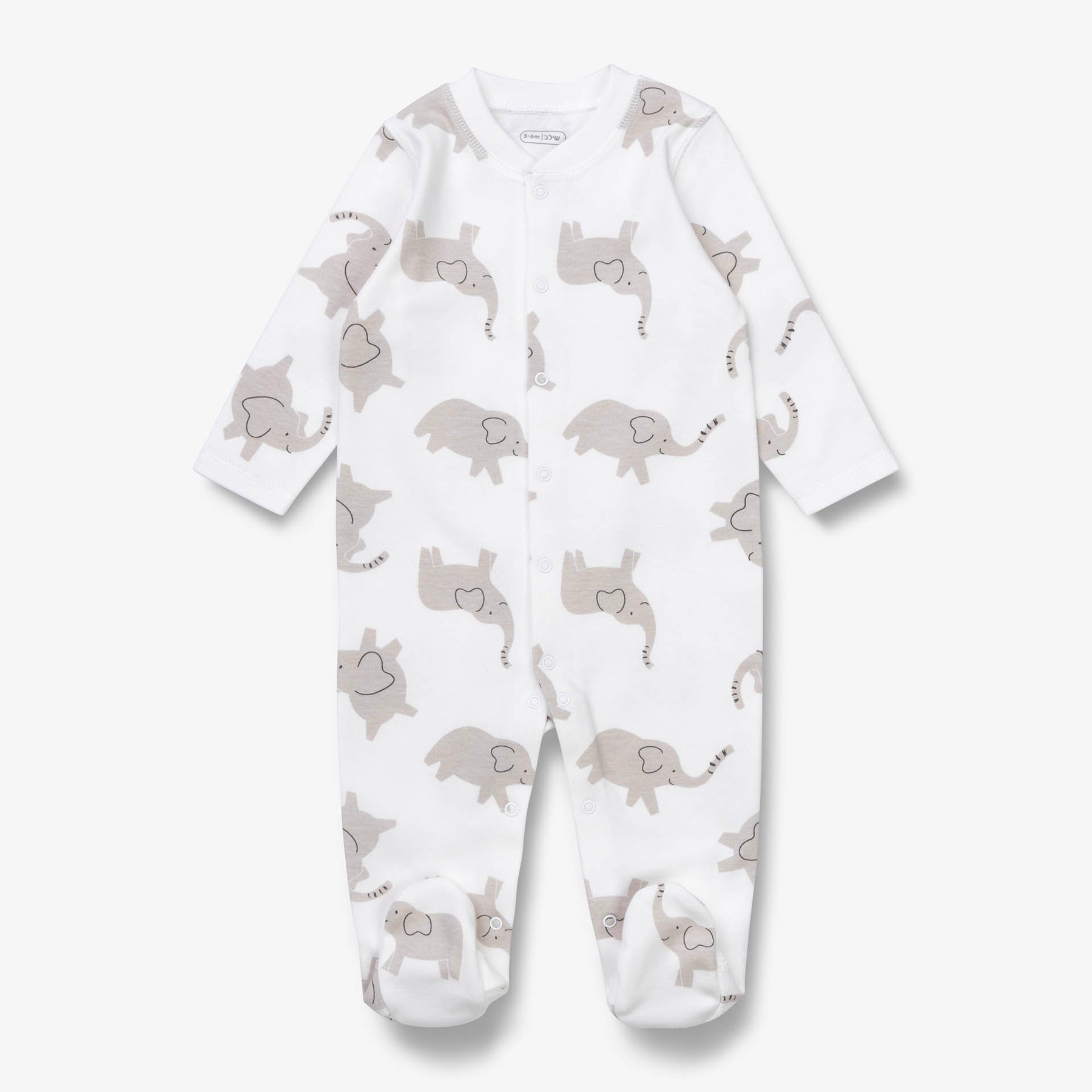 מארז 2 אוברולים עם רגליות בהדפסים שונים של פילים. לאוברולים סגירת לחצניות.