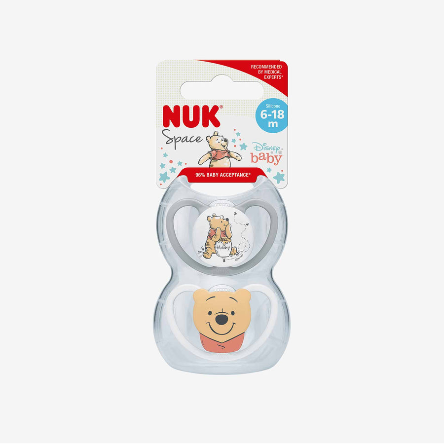 זוג מוצצים ספייס 6-18 לבן פו הדב