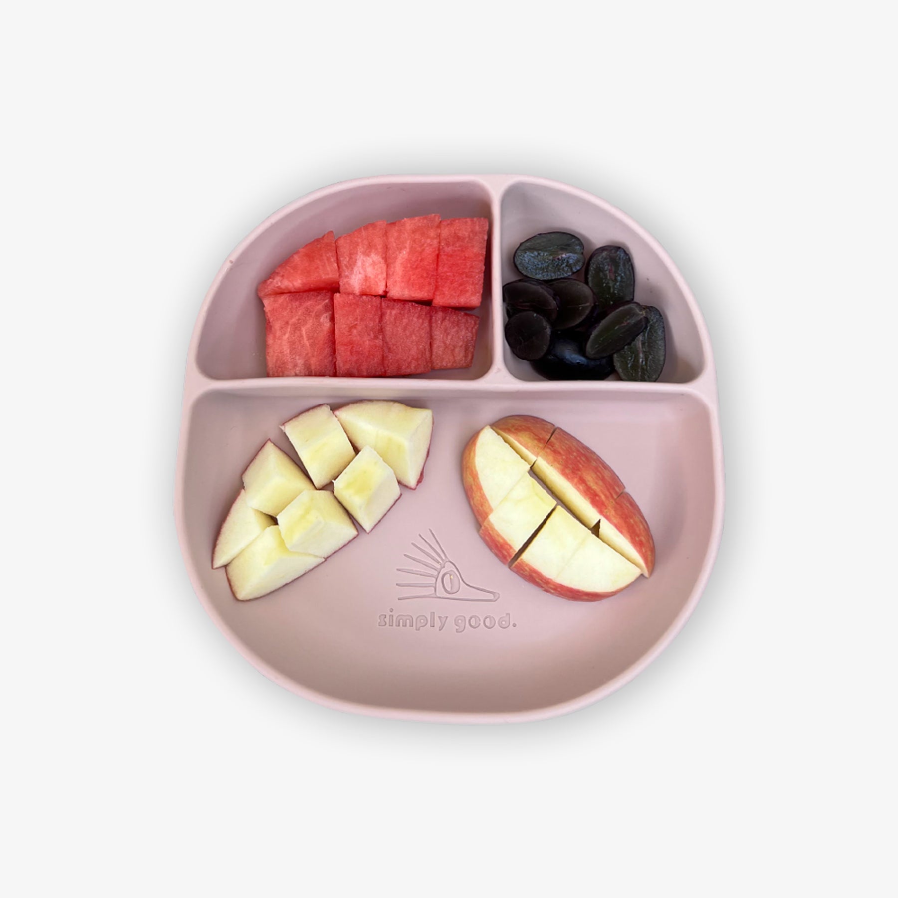צלחת סיליקון מחולקת מאויירת במינימליסטיות המוכרת של סימפלי גוד עדכנית ורלוונטית לכל גיל.