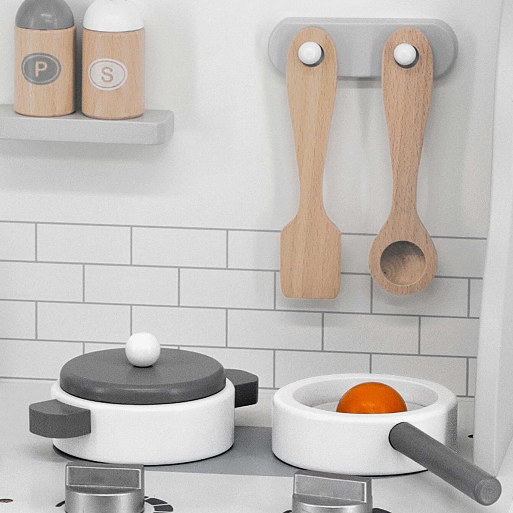 מטבח מפואר עשוי עץ מלא איכותי חזק ועמיד. המטבח כולל: כיור וברז תנור ארון וכיריים סיר ומכסה מחבת שעון כף מרית מלחייה ופלפליה. כפתורי הכיריים ניתנים לסיבוב ומשחק.