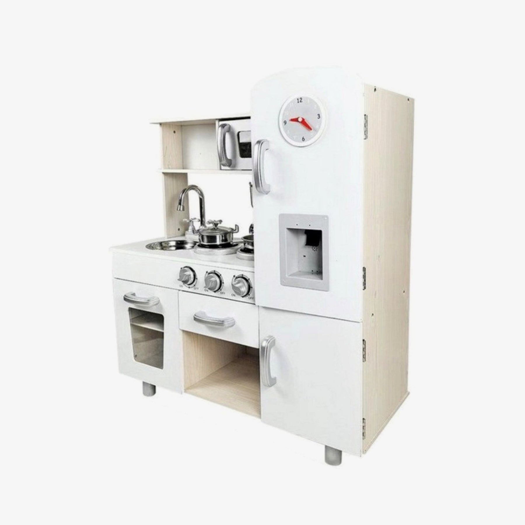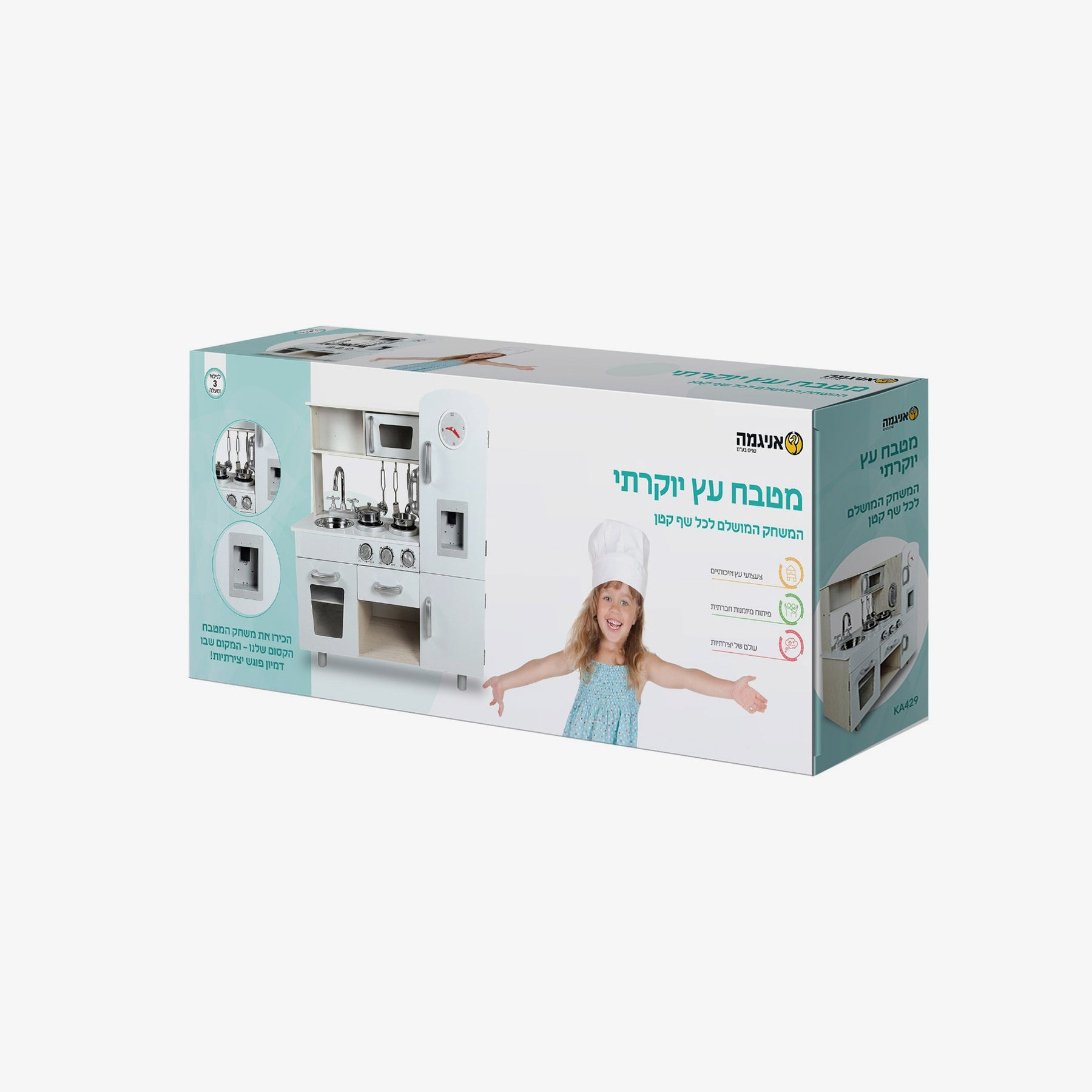 מטבח פרימיום מעץ כולל אביזרים המשחק מעודד שיתוף פעולה פתרון בעיות וכישורים חברתיים והכל תוך כדי משחק מהנה!כל הכלים עשויים מחומרים איכותיים וללא חומרים רעילים כך שהילדים יכולים לשחק בבטחה.כולל סיר עם מכסה מחבת תרווד מצקת ומרית. מתאים מגיל 3 שנים ומעלה.