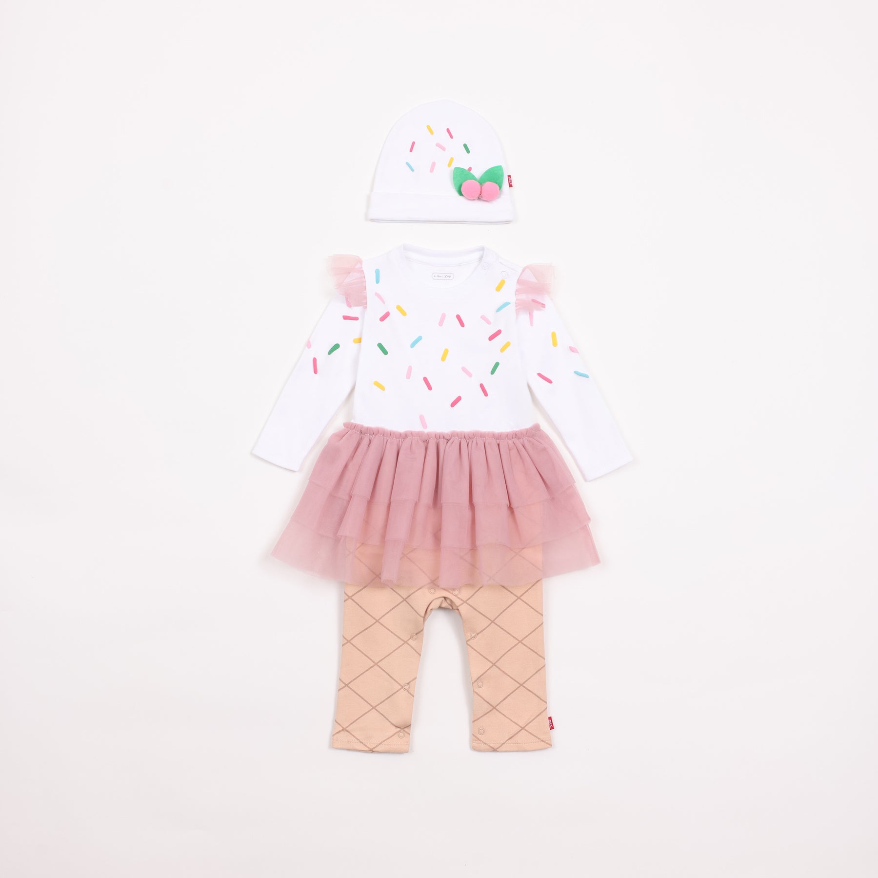 אוברול לתינוקות בהשראת גלידה עם סוכריות, עשוי בד כותנה מלא.