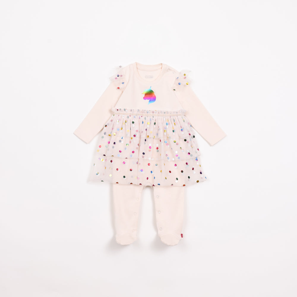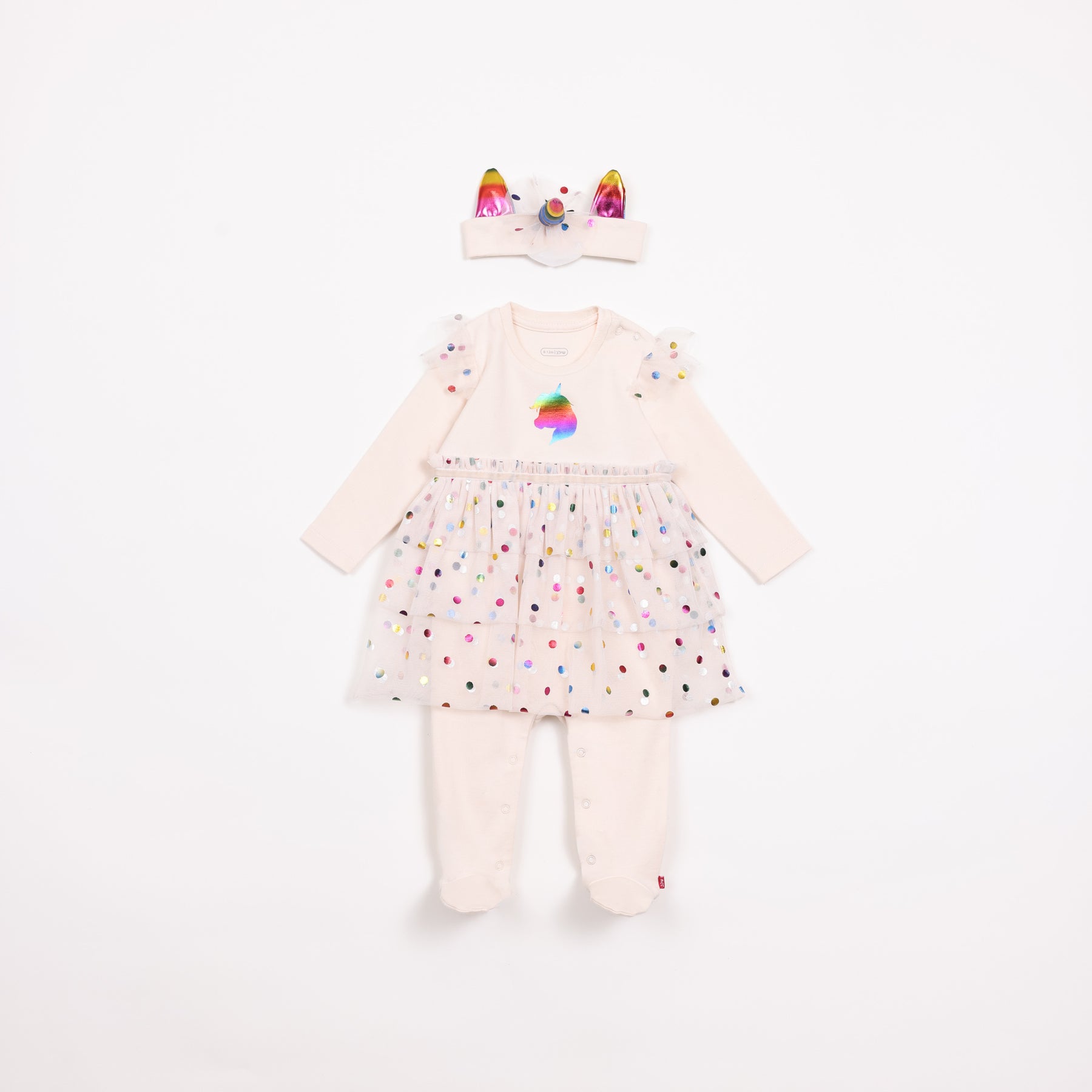 אוברול לתינוקות בהשראת חד קרן, עשוי בד כותנה מלא.