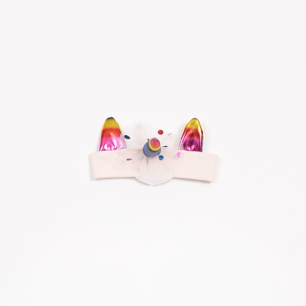 מגיע עם  סרט ראש  עשוי מבד תואם עם קרן צבעונית ואוזניים מבד.