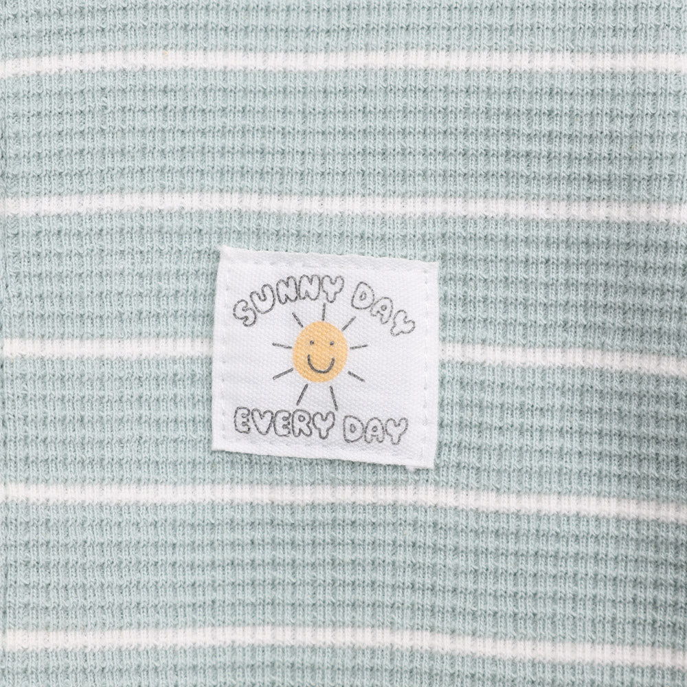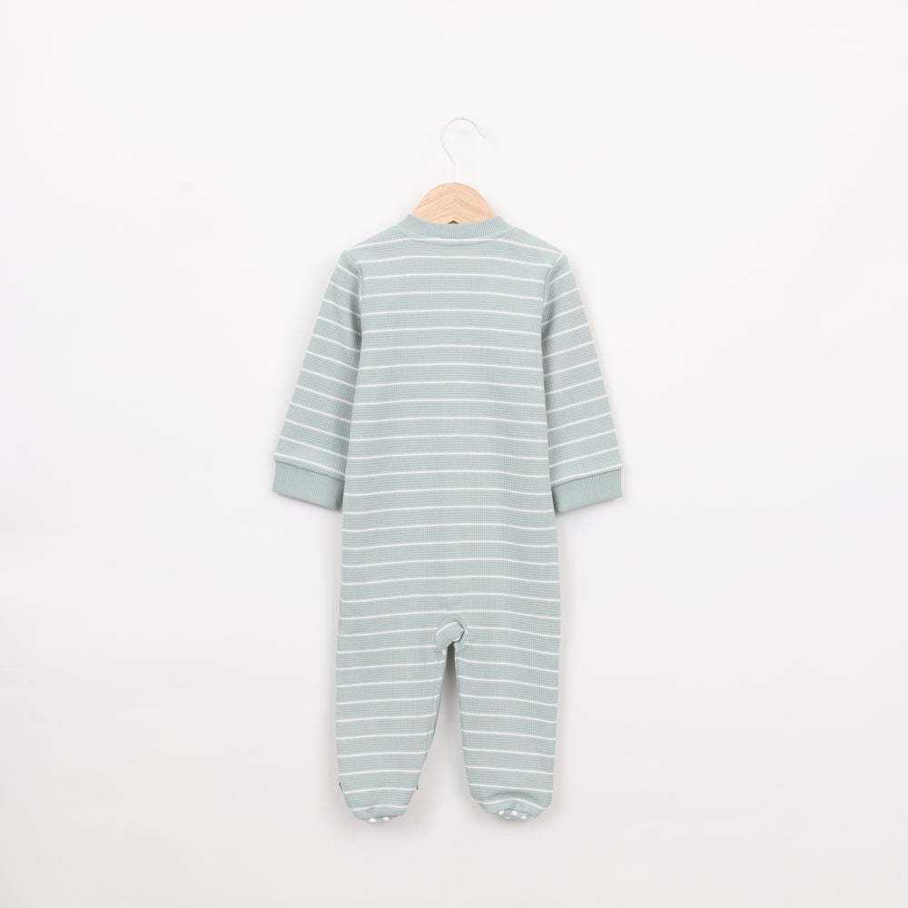 אוברול תינקות רך ונעים במיוחד הכולל אוברול ארוך בגוון ירוק מנטה פסטלי עם דוגמת פסים לבנים ורוכסן לכל האורך.