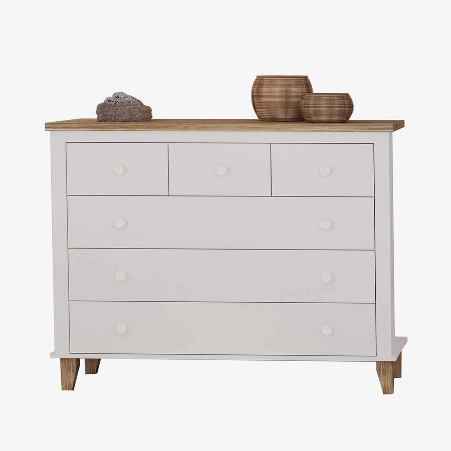 שידת תינוק דגם מור 1.2 לבן + אלון אדום