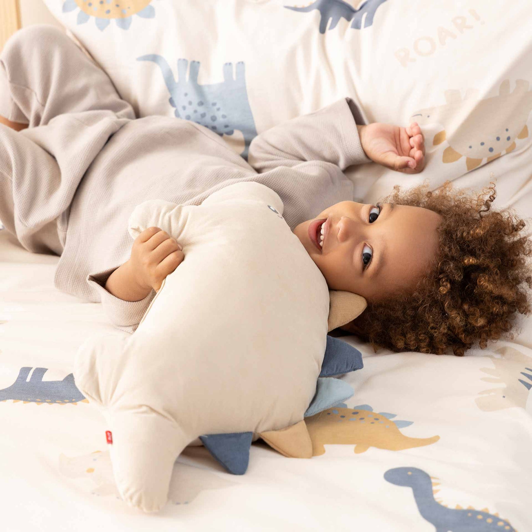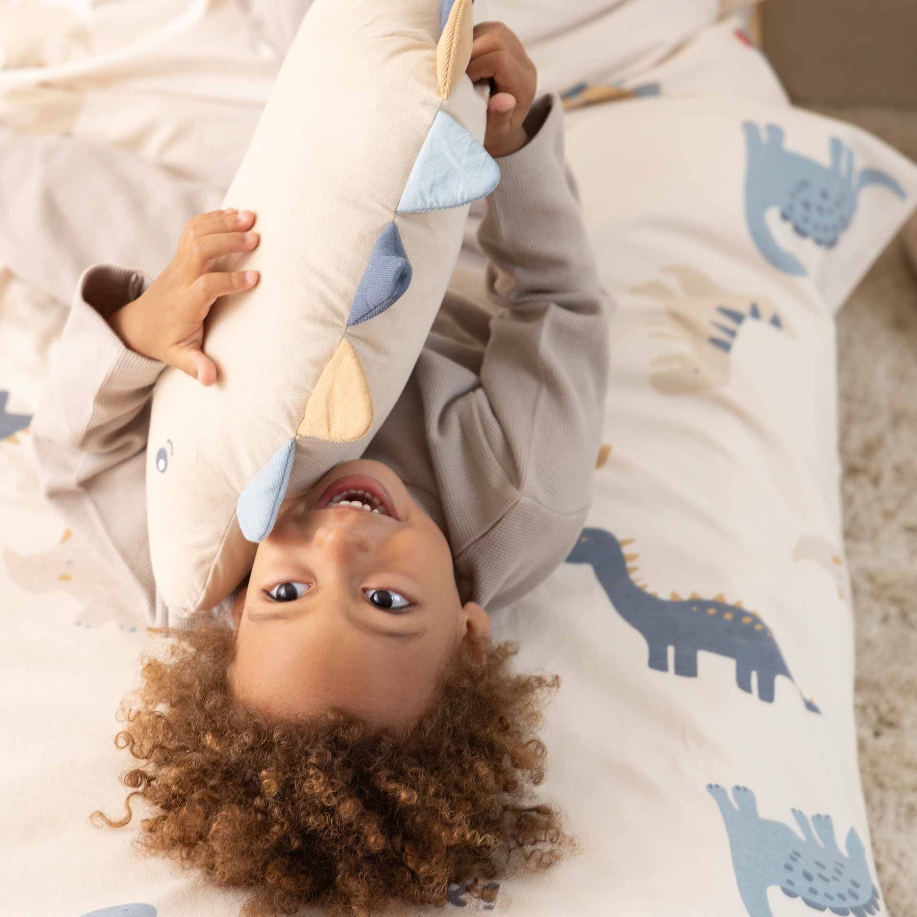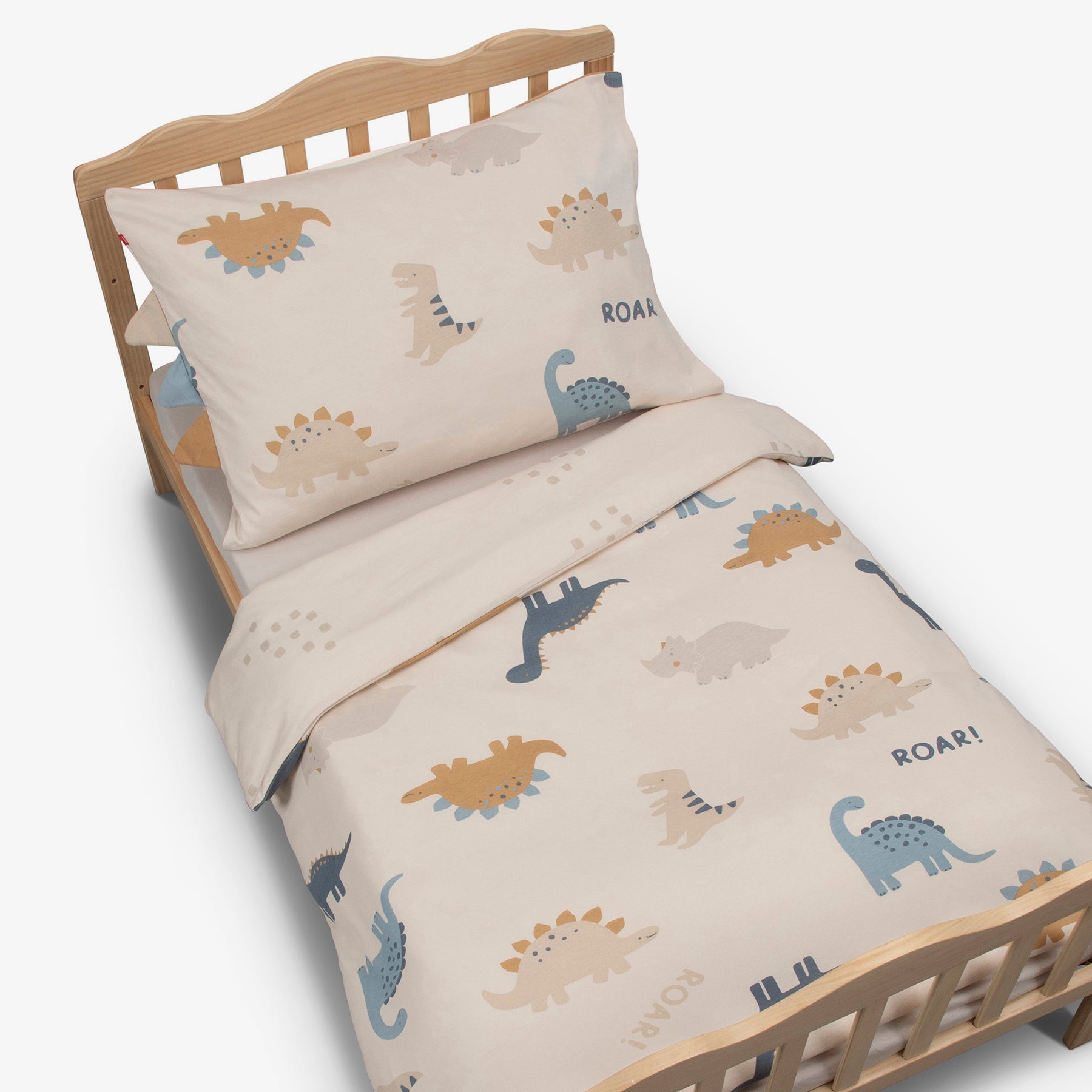 סט מצעים מכותנה איכותית למיטת מעבר טודלר מתוך קולקציית החורף החדשה בעיצוב של דינוזאורים. הסט כולל ציפית לכרית 70X50 סמ/ סדין 70X130 סמ/ ציפה לשמיכה 100X140 סמ. 100% כותנה.