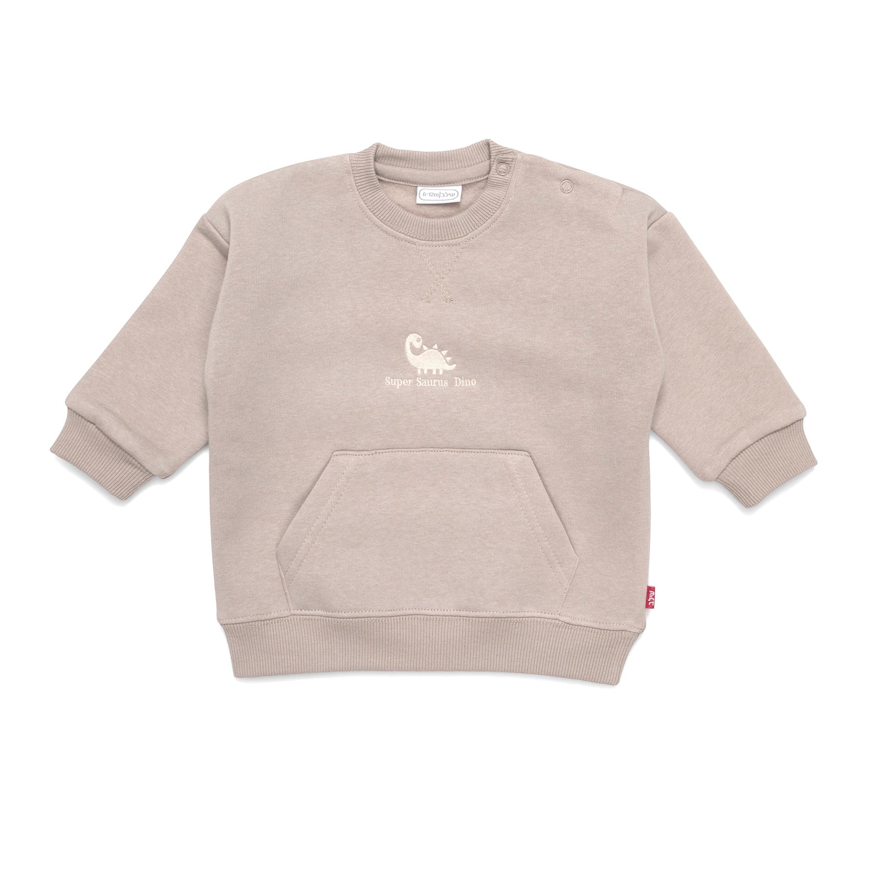 חליפת פוטר אופנתית בצבע חום מוקה הכוללת סוויטשירט עם כיס קנגורו ורקמה בדמות דינוזאור.