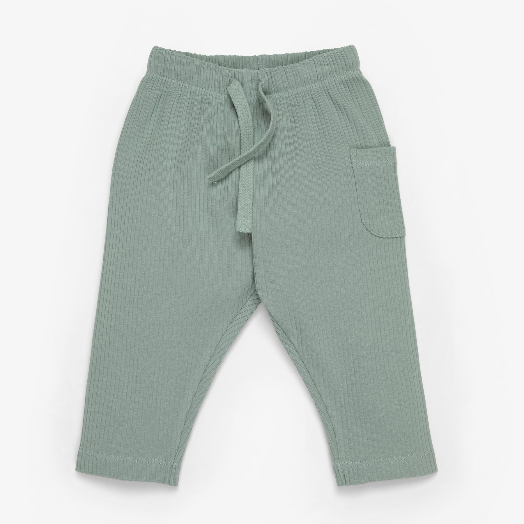 מכנסי טרנינג ארוכים עם כיס בצד הרגל וקשירה במותניים. המכנסיים בצבע אקווה כהה.