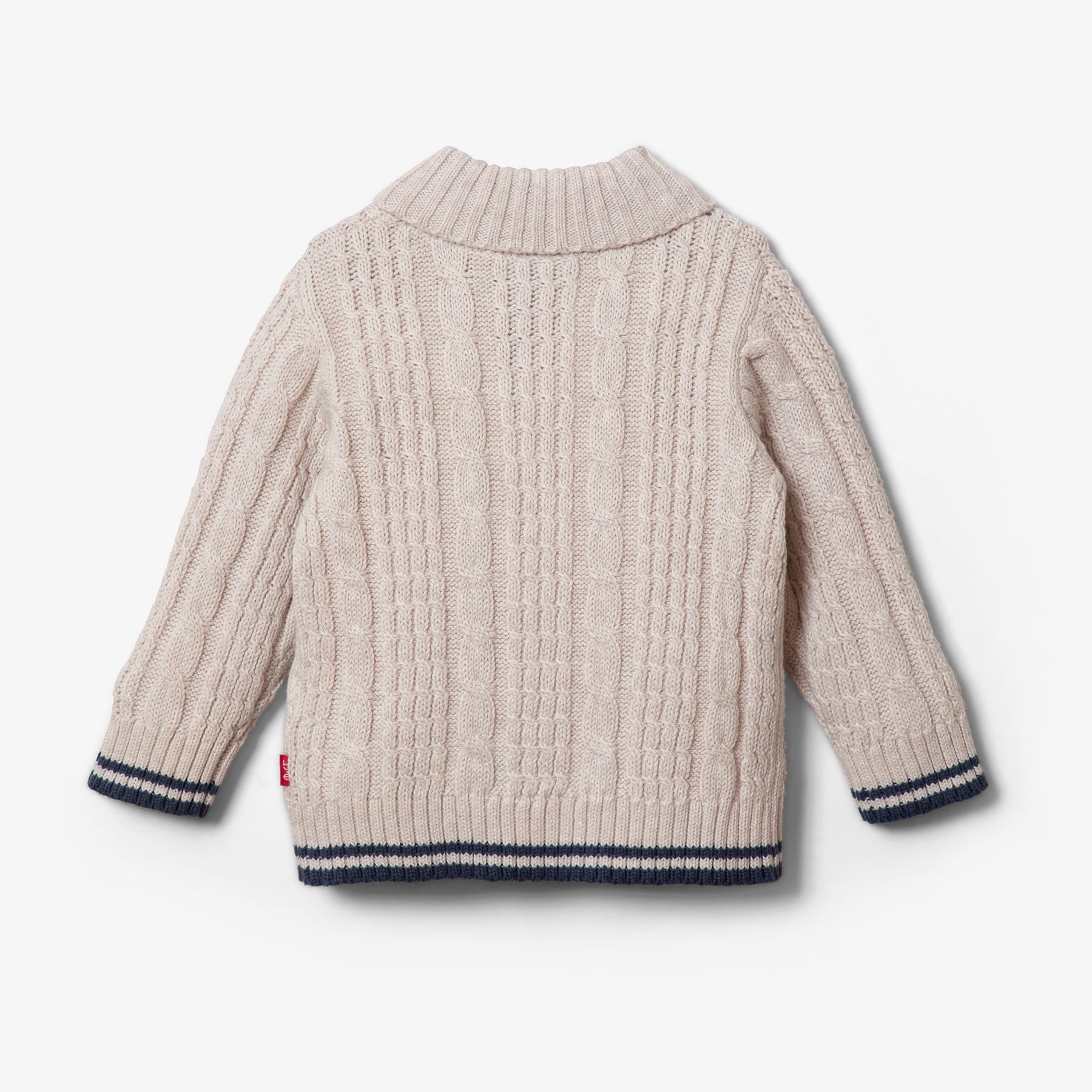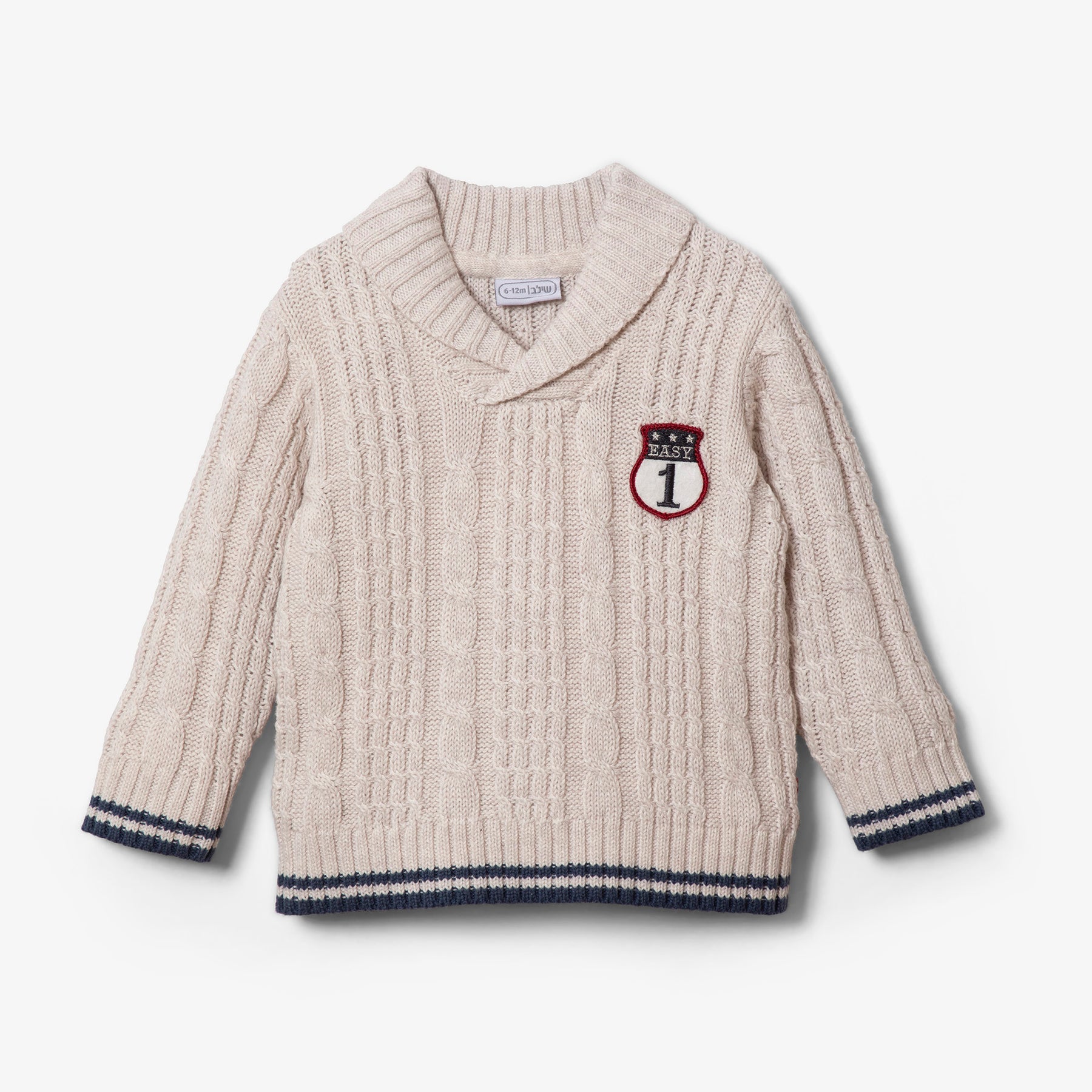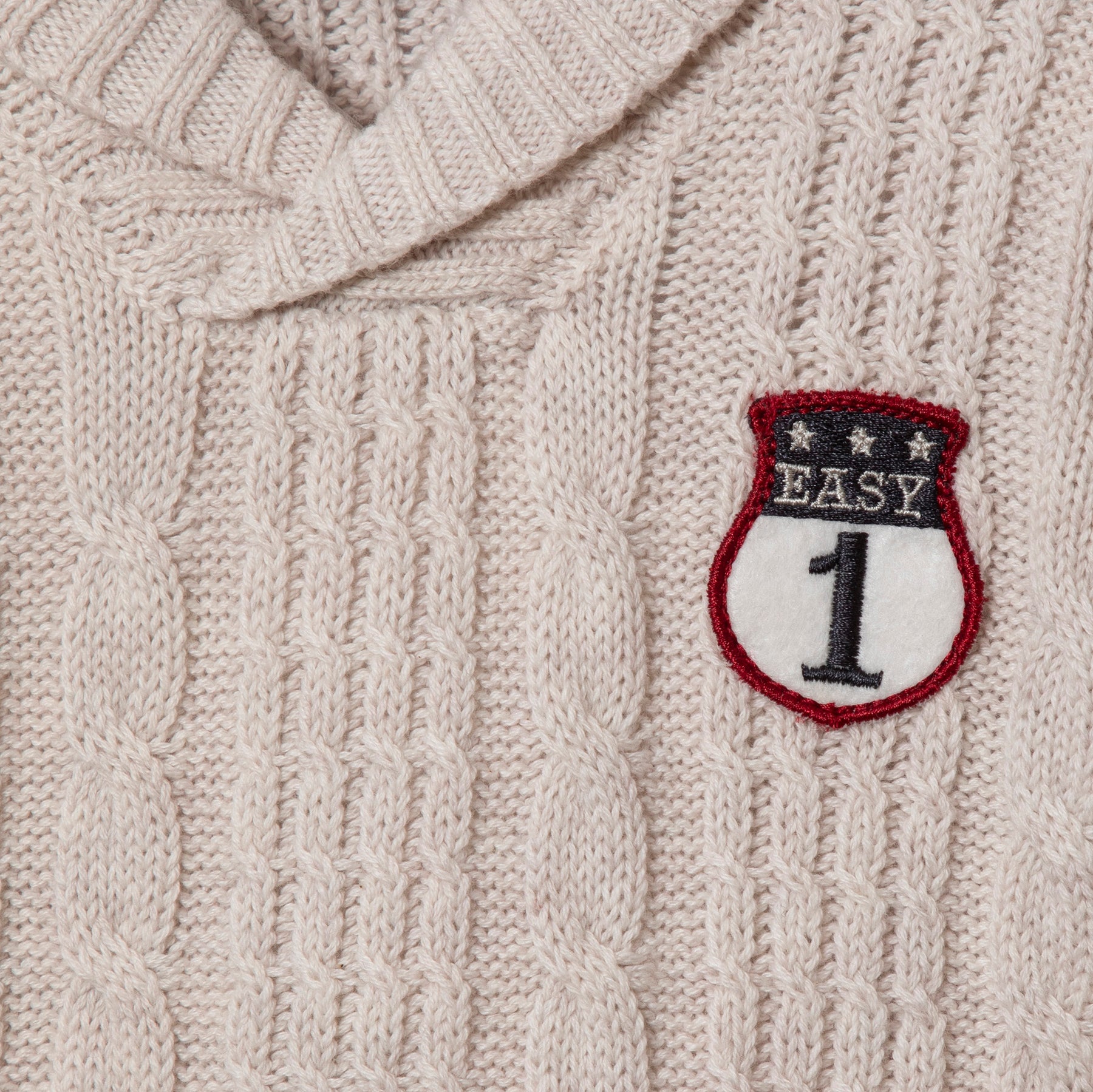סוודר סריג בצבע קרם מלאנז'. לסוודר צווארון בסגנון שאל 1ופאץ בספרה 1.